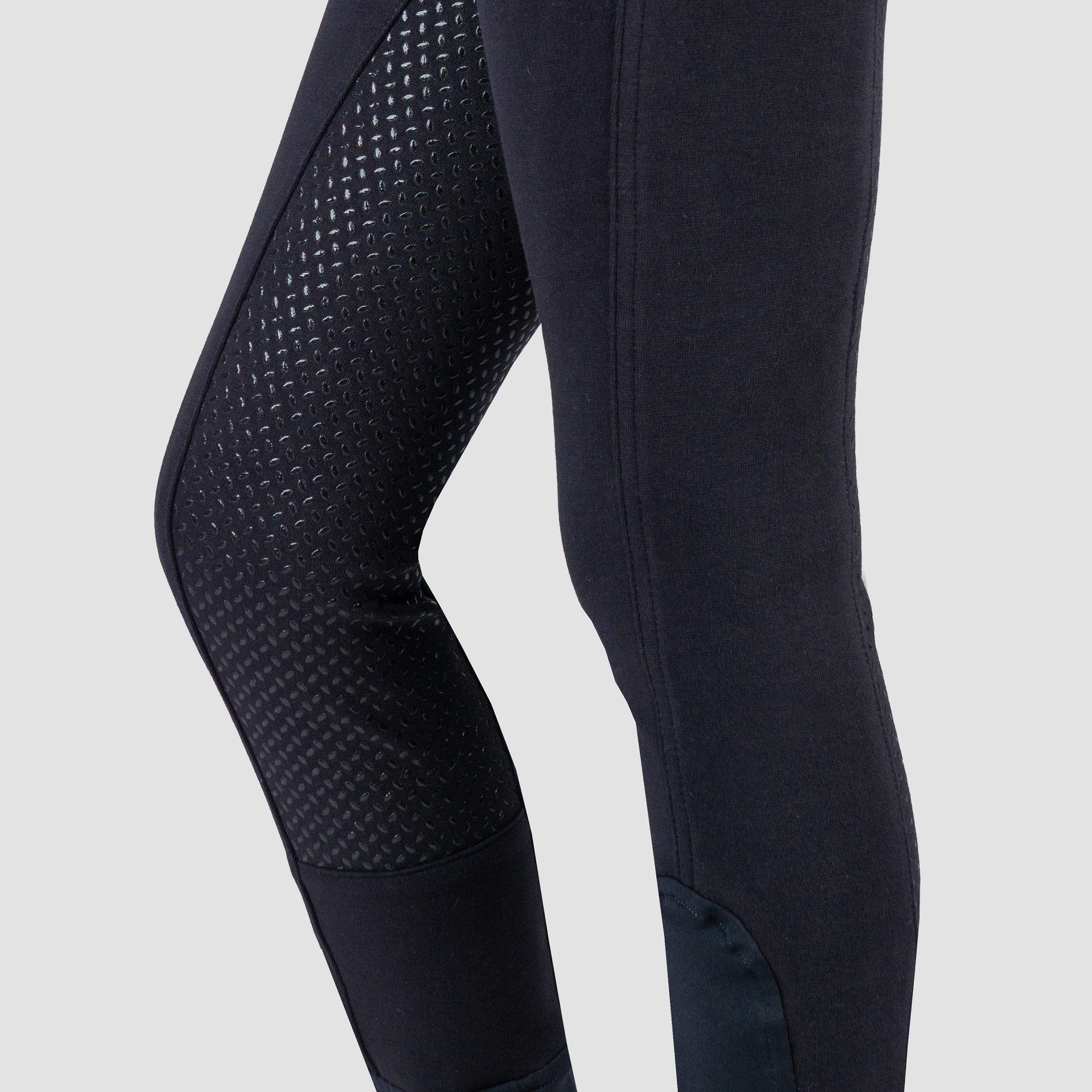 Basic junior rijbroek met twee voorzakken en een matte rijst siliconen zitvlak. Productspecificaties: Basic gebreide katoenen rijbroek Elastische enkelsluiting riemlussen twee voorzakken Mat siliconen zitvlak Materiaal: 95% katoen 5% elastaan Gebreid