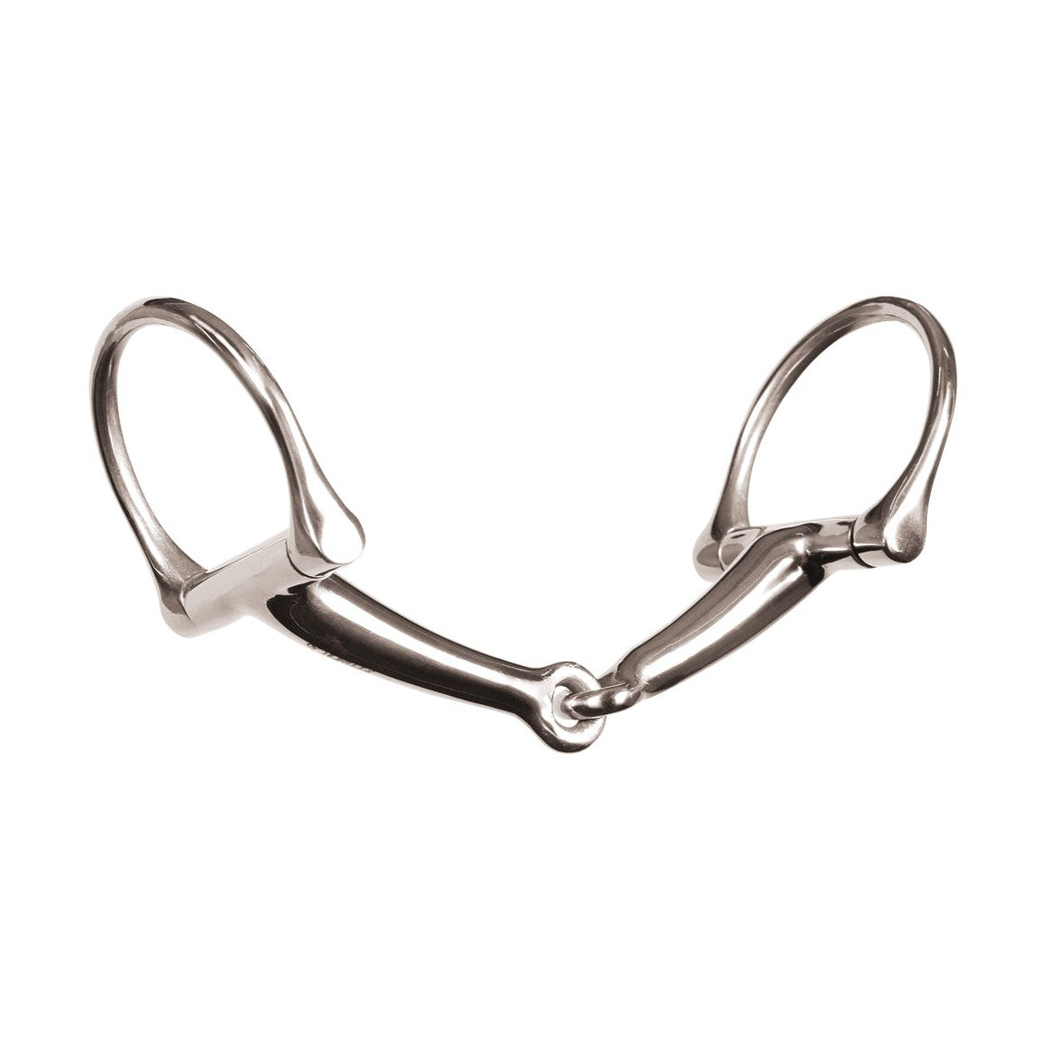 Een D-trens ligt rustig in de mond van het paard, zorgt voor extra zijdelingse steun en de vorm van de D-ringen voorkomt dat het bit door de mond getrokken kan worden.