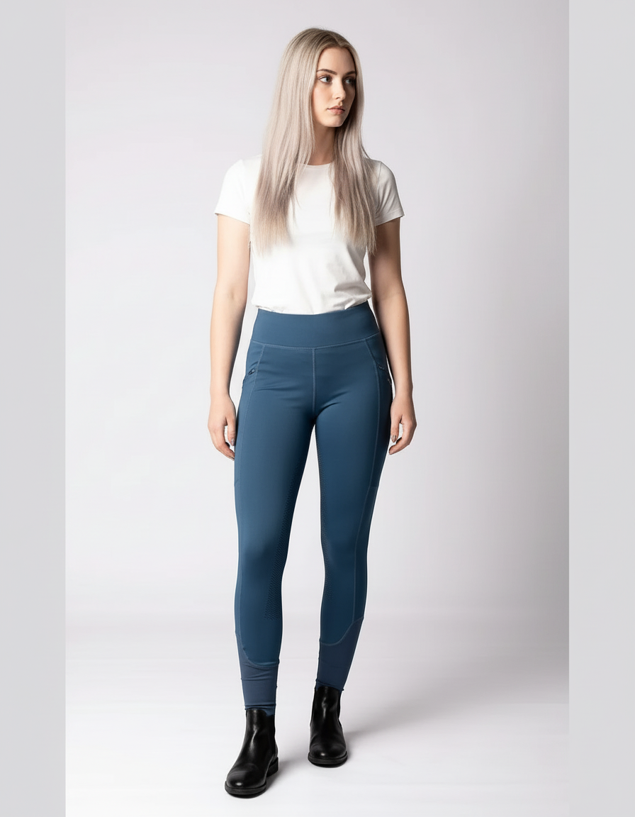 Paardrijlegging gemaakt van een zeer comfortabele en elastische stof. De broek is voorzien van twee zakken met een ritssluiting aan de zijkant, rondgenaaid zitvlak met siliconen voor extra grip in het zadel en "flex legs" voor extra comfort in de rijlaarzen.