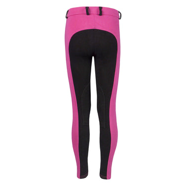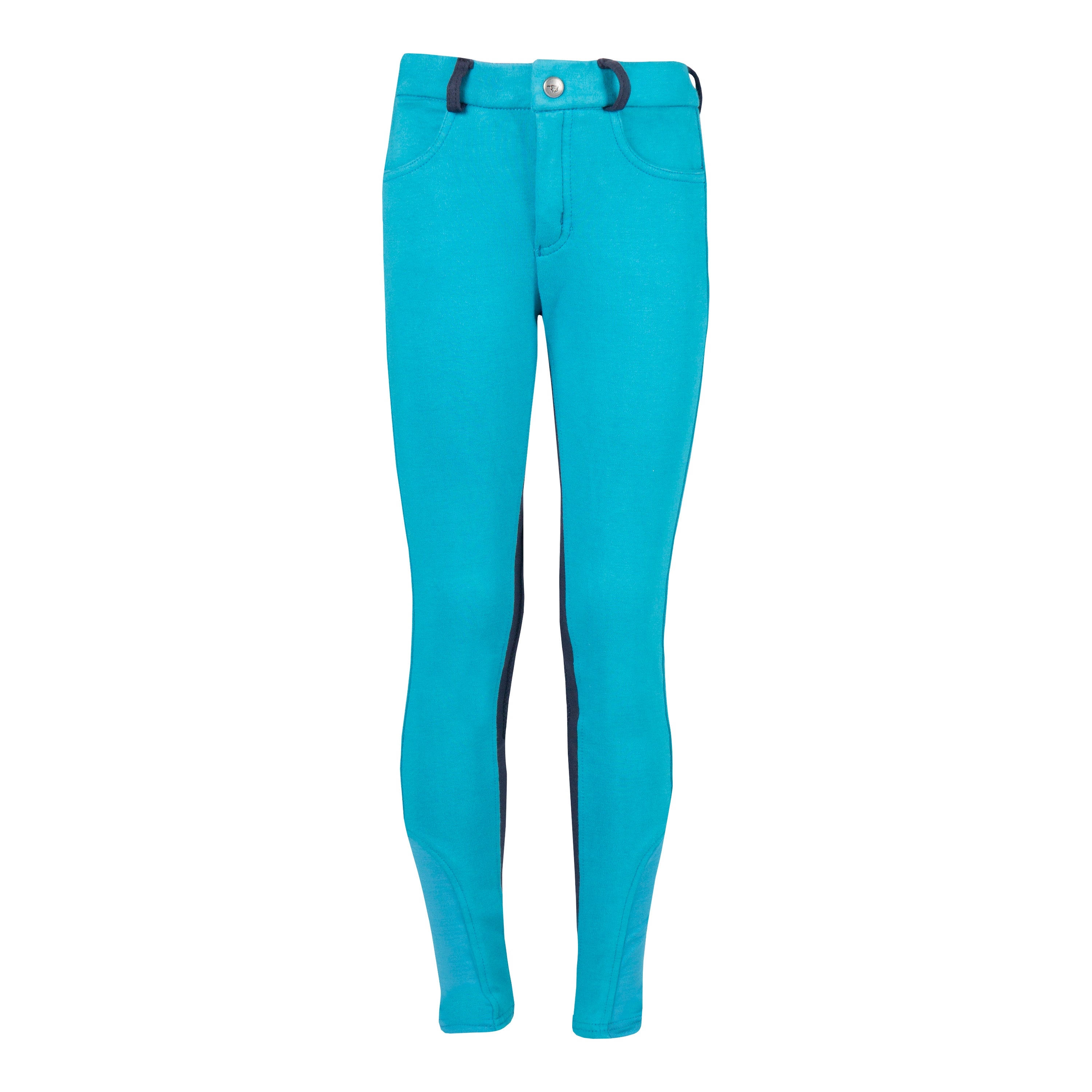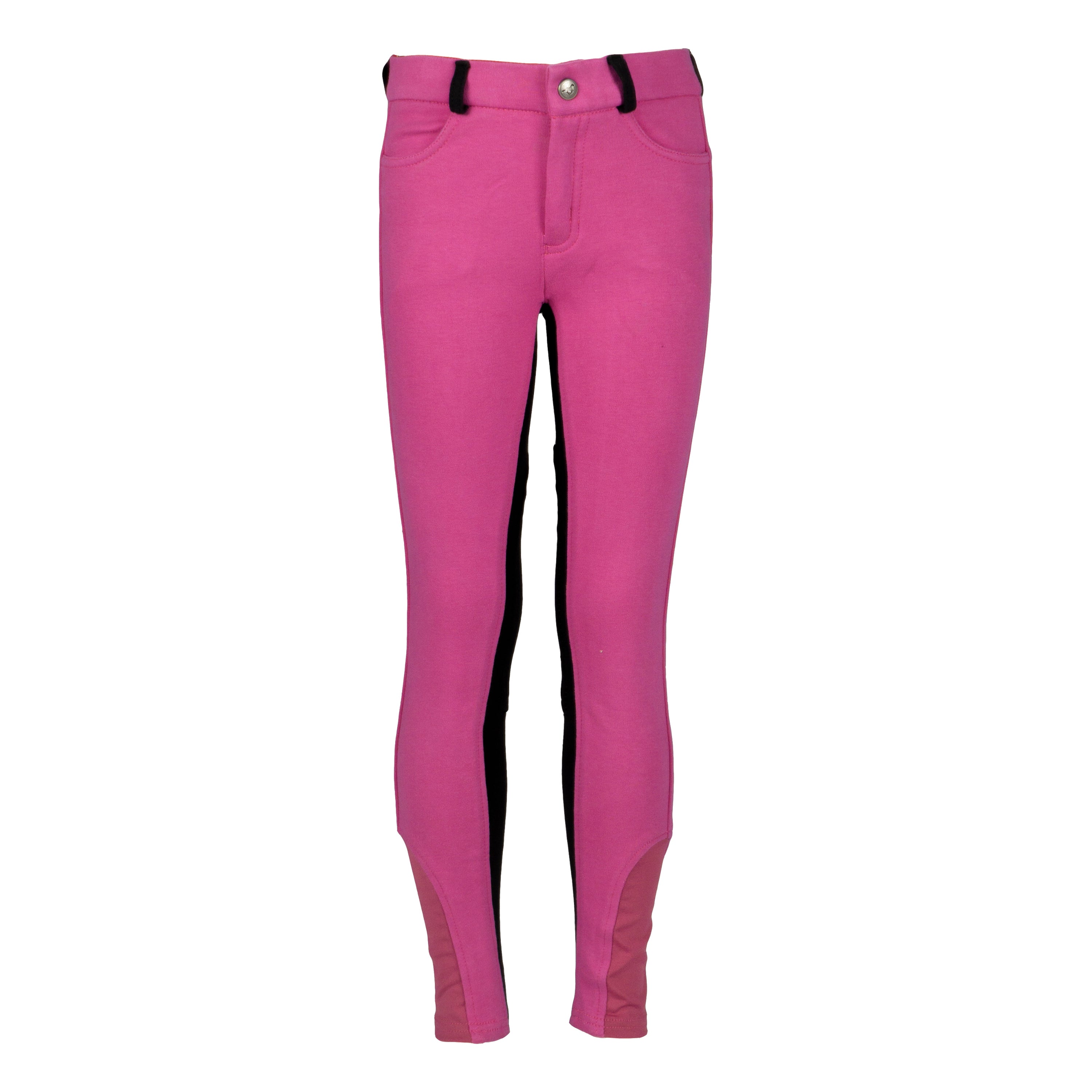 Basis kinderrijbroek met contrasterend zitvlak en riemlussen. De rijbroek beschikt over stoffen kniestukken. Productspecificaties:< Contrasterend zitvlak en riemlussen Kniestukken van stof Materiaal:< 95% Katoen 5% Spandex
