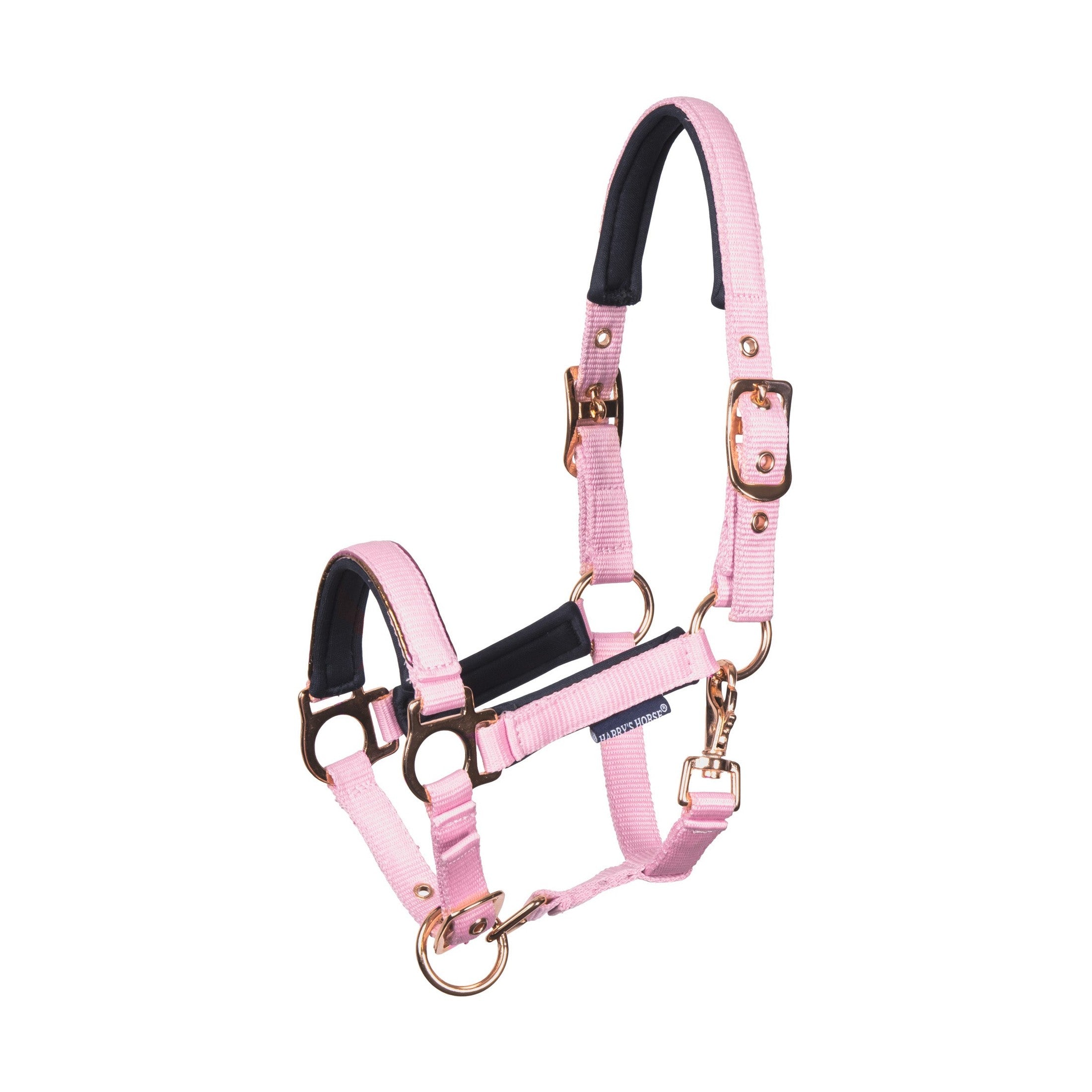 Dieses verstellbare Fohlenhalfter besticht durch eine elegante Metallpaspelierung am Nasenriemen. Sowohl das Genickstück (beidseitig) als auch der Nasenriemen sind für eine optimale Passform vollständig verstellbar. Nasenriemen, Backenstücke und Genickstück sind weich mit komfortablem Neopren gepolstert, um Reibung zu vermeiden.