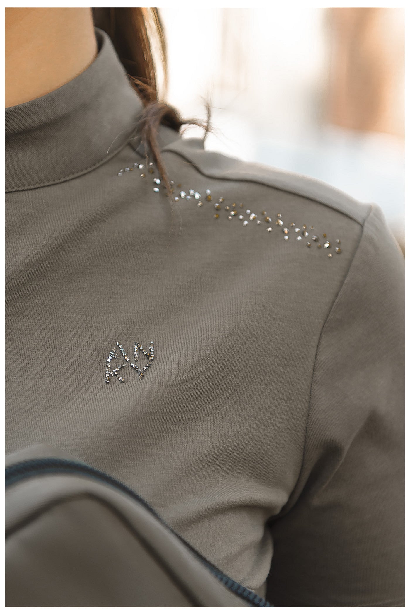 - Verziert mit Strasssteinen entlang der Schulternaht