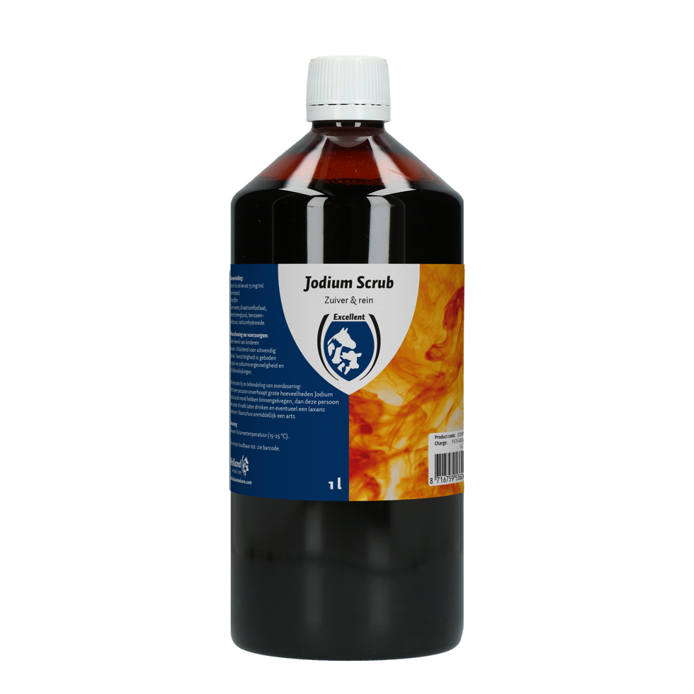 Jodium Scrub heeft als bestanddeel povidonjodium. Povidonjodium is makkelijk oplosbaar in water en is prettig in gebruik omdat het niet prikt.