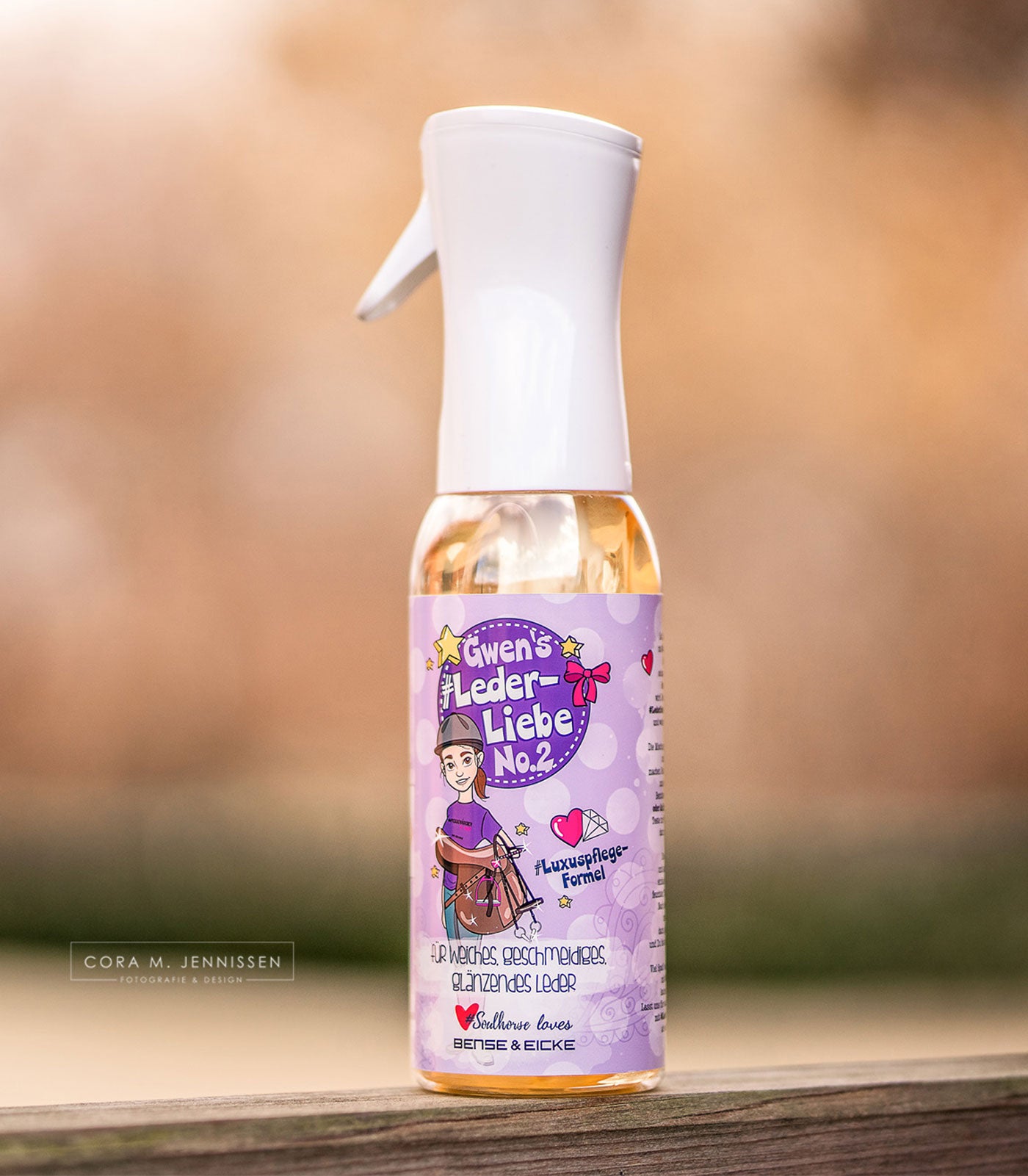 Is your leather gear cleaned with #Lederliebe number one? Then here we go, see what number 2 can do. If you use it regularly your leather goods will thank you, #Lederliebe No. 2 softens your leather and puts dirt in its place. The mixture of vegetable coconut oil and nourishing glycerine makes your leather supple and durable and gives it a beautiful shine! Do not use it on untreated or aniline suede and nubuck leather – test on a concealed area if necessary, then not everyone will see it straight away! The application is easy and even for lazy people like me, simply spray on and rub in with a damp cloth – even I can do it! After drying, polish it briefly with a soft cloth, then everything shines twice as bright and you are ready to go to the tournament. Have fun cleaning now, you can"t go wrong with #Leberliebe No.1 & No.2. Let"s plead for clean saddlery in the stable, with #leatherlove dirt will no longer reign here from now on!