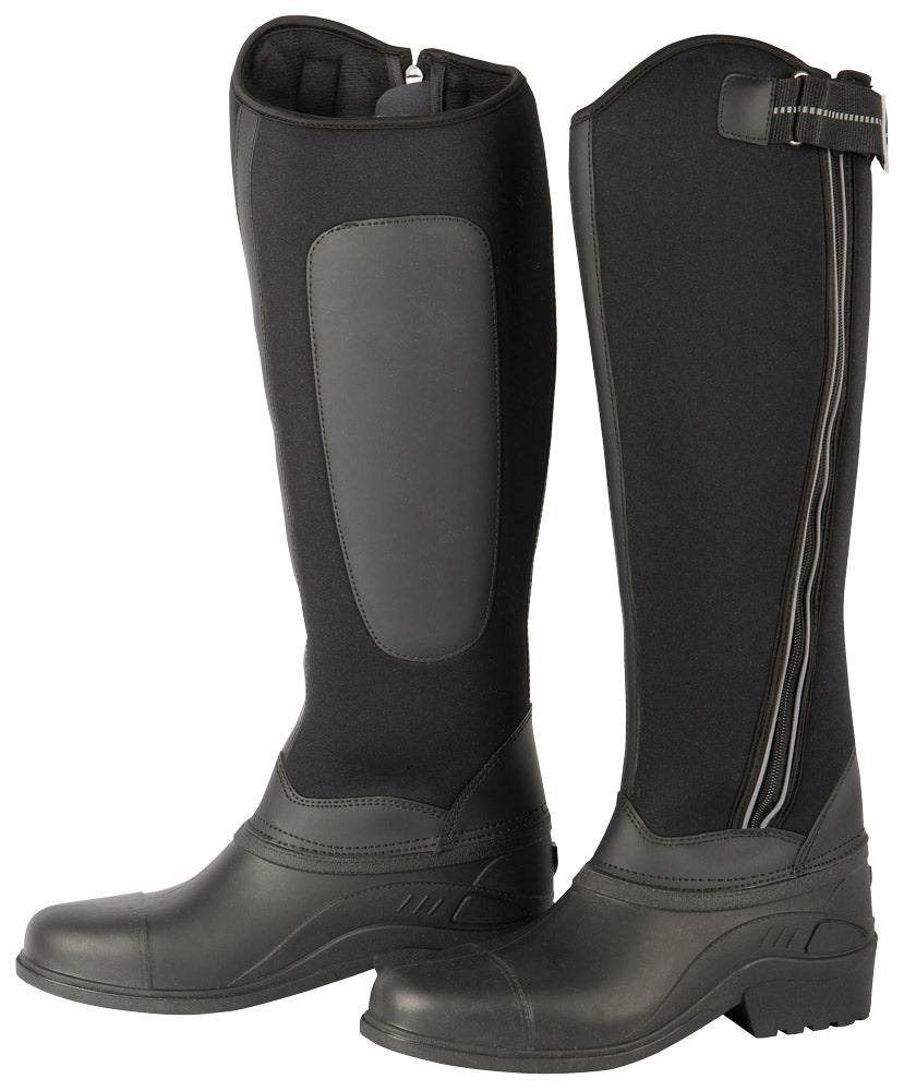 Warme thermolaars met ritssluiting met reflective piping aan de buitenzijde, upper van neopreen, het neopreen is geruwd aan de binnenzijde en heeft daardoor een zachte feel, de voet van de laars is tot boven de enkel gevoerd en daardoor lekker warm en comfortabel, de voet is van rubber en daardoor geheel waterdicht.