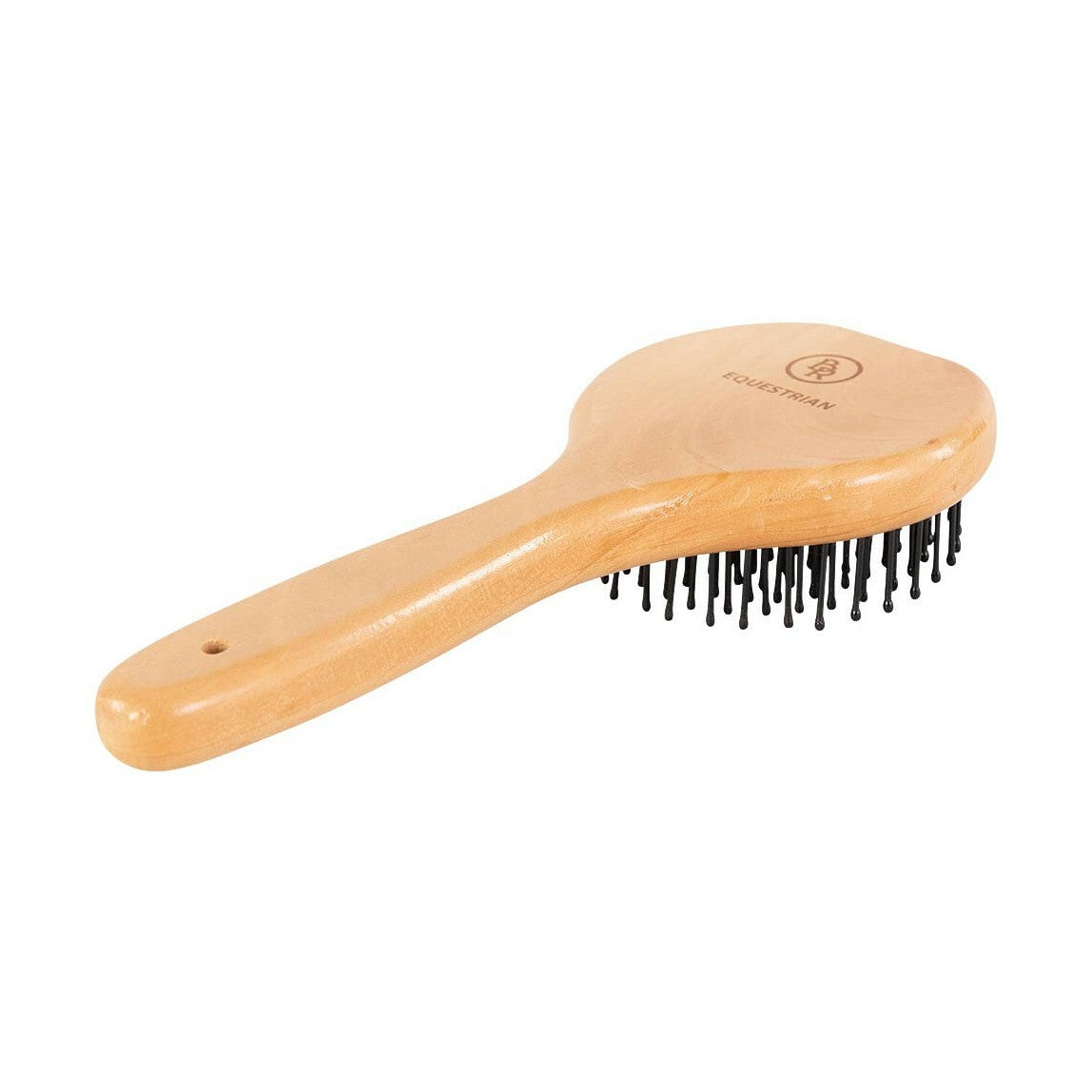 Deze robuuste manenborstel is voorzien van stevige pinnen van kunststof. Daarnaast is de borstel gemaakt van duurzaam en stevig bamboehout. Dankzij de steel ligt de borstel stevig in de hand voor een goede grip. De bamboe is gelakt met plantaardige lak voor een glanzend design.