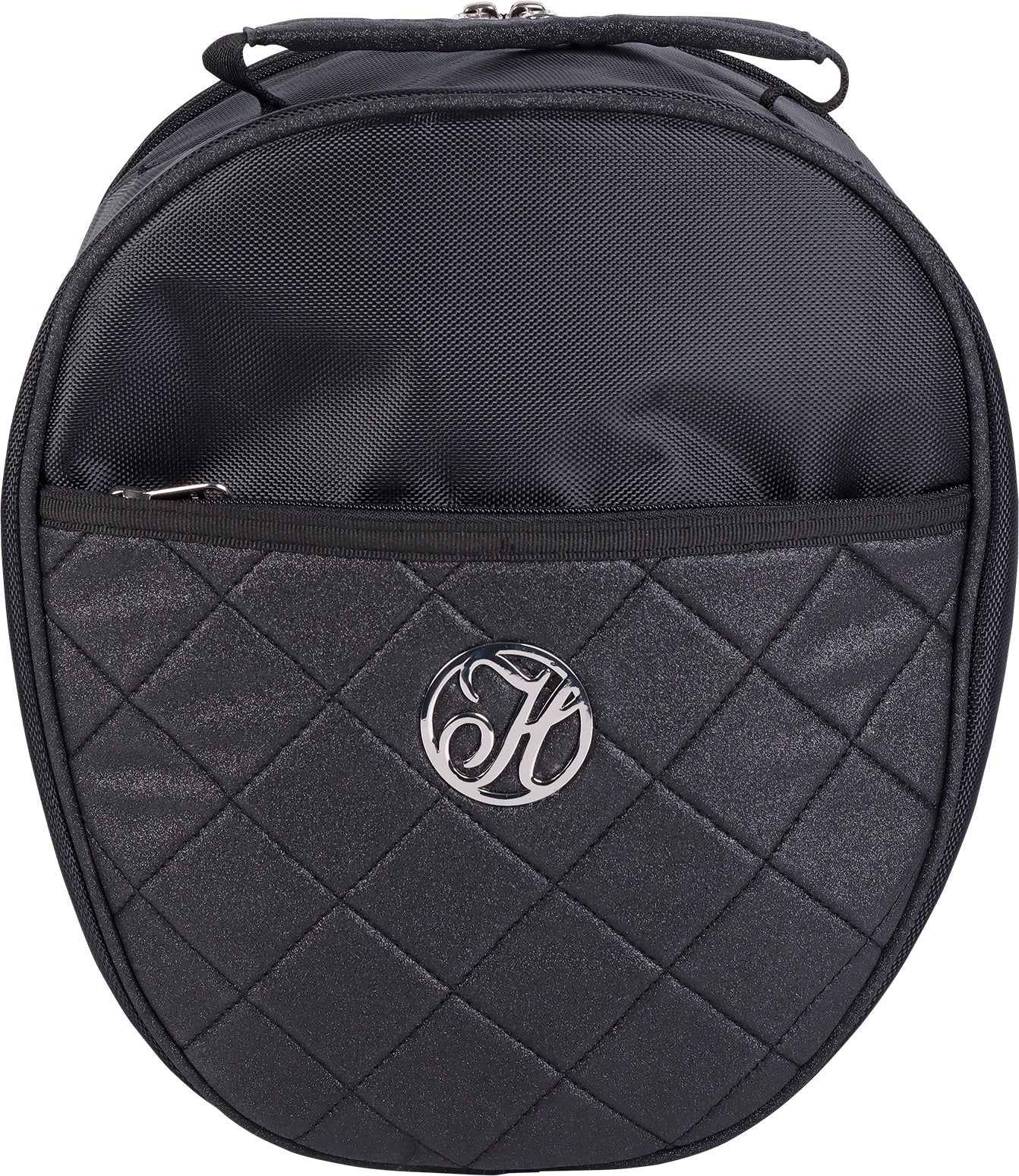 Luxe uitgevoerde tas uitgevoerd met schitterende glitterstof. De Deksel is voorzien van een twee-weg rits. Uitgevoerd met een extra vak met rits op de voorzijde. Voorzien van kort handvat.