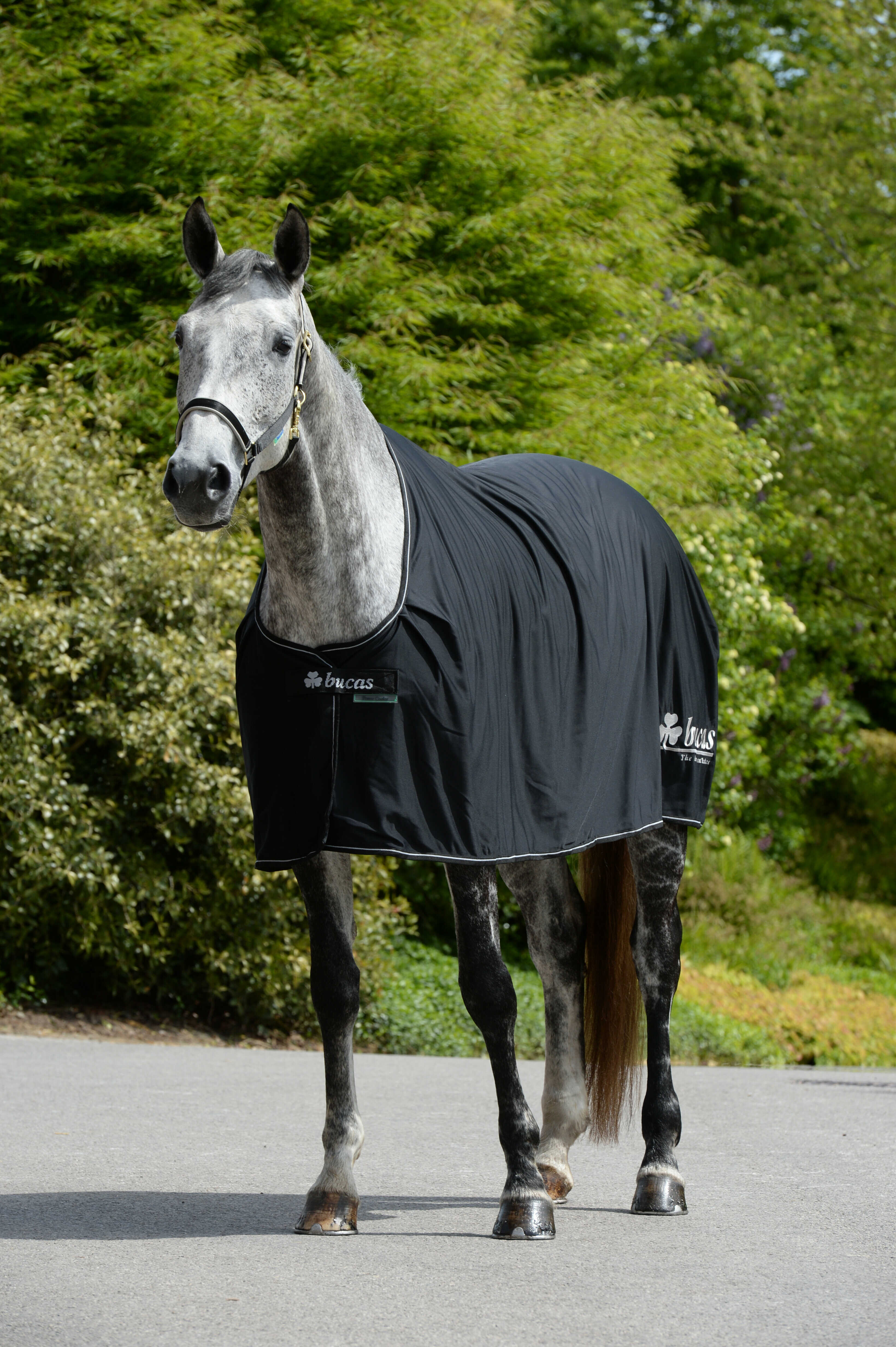 De Bucas Panel Prize Cooler is een mooie ademende vochtregulerende zweetdeken met als extra een afneembaar paneel op de borst waar het Bucas logo op wordt afgebeeld. Verder is deze deken is uitgevoerd met een klittenband borstsluiting over de gesp heen, schouderplooien zorgen voor een goede pasvorm en voldoende beweegruimte. De Bucas Power Prize Cooler is gemaakt van dezelfde stof als de multifunctionele lichtgewicht Bucas Power Cooler deken die ideaal is als zweetdeken, transportdeken, wedstrijddeken en lichte staldeken. Deze stof voert snel het vocht en overtollige warmte af. Het gladde buitenmateriaal stoot vuil af. De voering is van glad nylon aan de voorkant. Ideale promo deken die zeer gemakkelijk geborduurd kan worden.