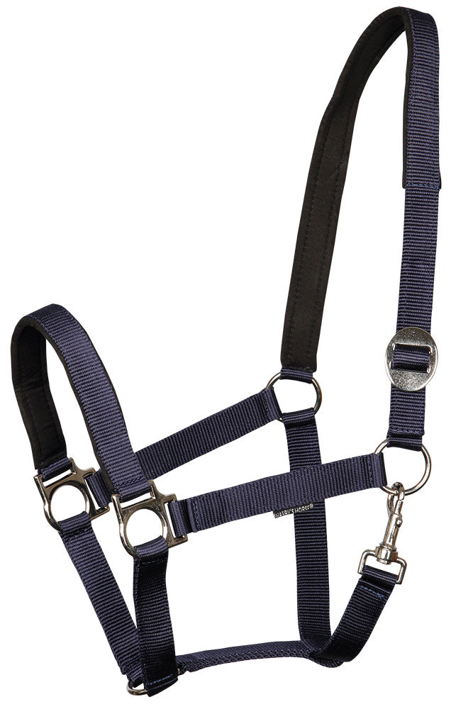 Halster met zilverkleurige fournituren. Gevoerd met microfiber op kopstuk en neus. Voorzien van schuifgesp.