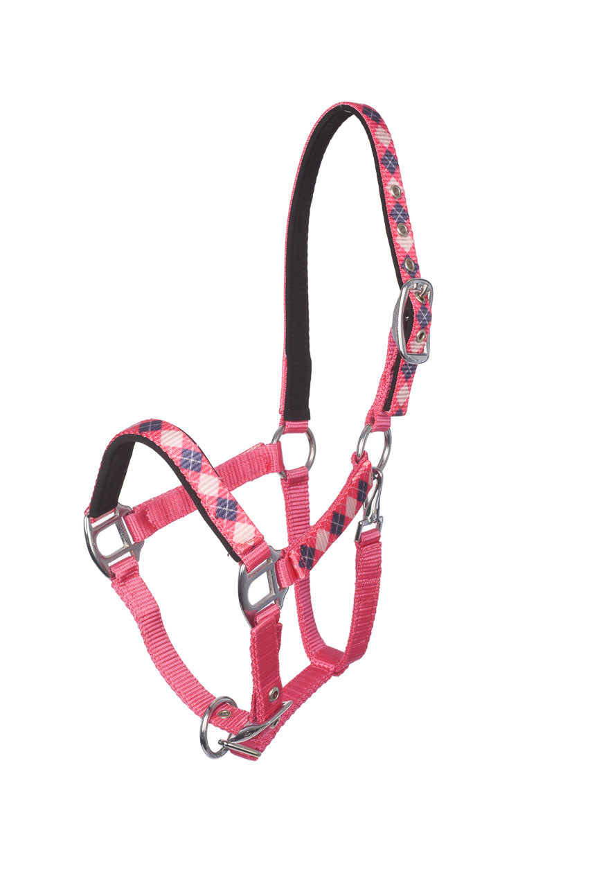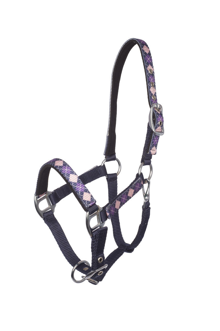 Dit gave halster van MHS is gemaakt van zware kwaliteit nylon. Het nylon is niet te breed waardoor dit halster zowel in de minimaten als de grote maten een mooie pasvorm heeft. Dit mooie halster is ruim verstelbaar onder de kin en op het kopstuk. Makkelijk in gebruik door de handige clip op de kaakriem.