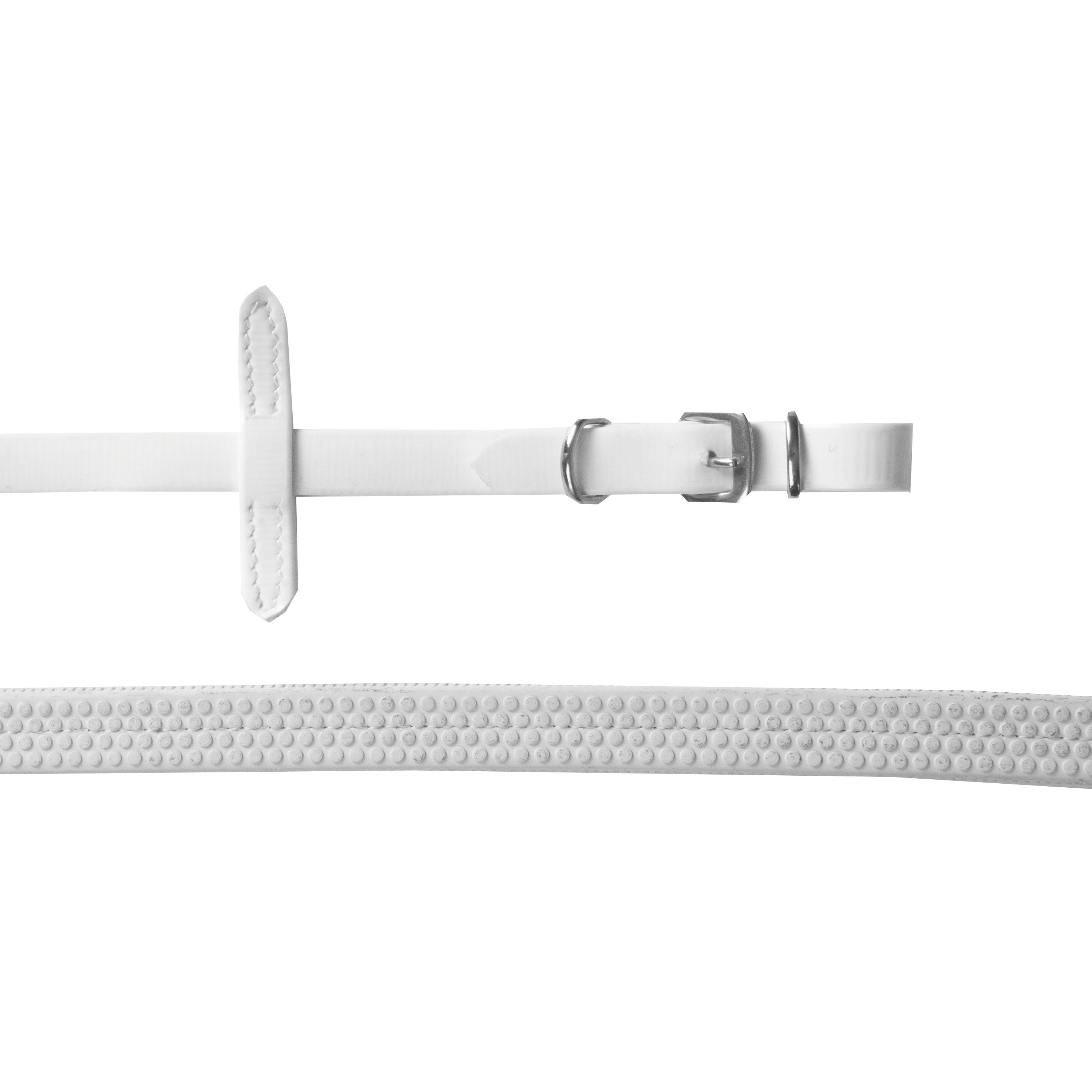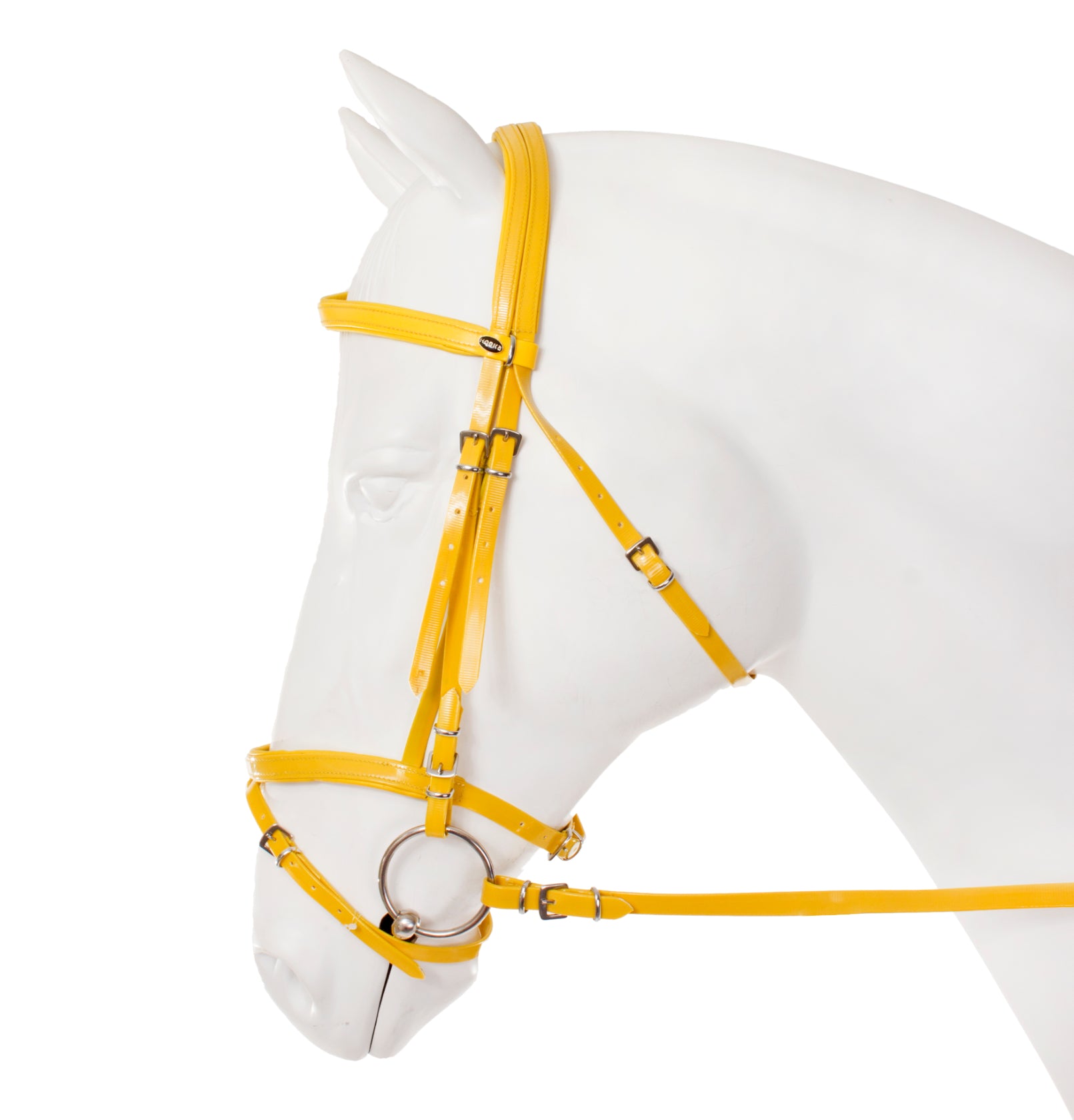 Kunststof hoofdstel met PVC straps en een nylon kern. Productspecificaties: Engelse neusriem Sterk Materiaal :Makkelijk schoon te maken onderhouds arm Inclusief rubber teugels