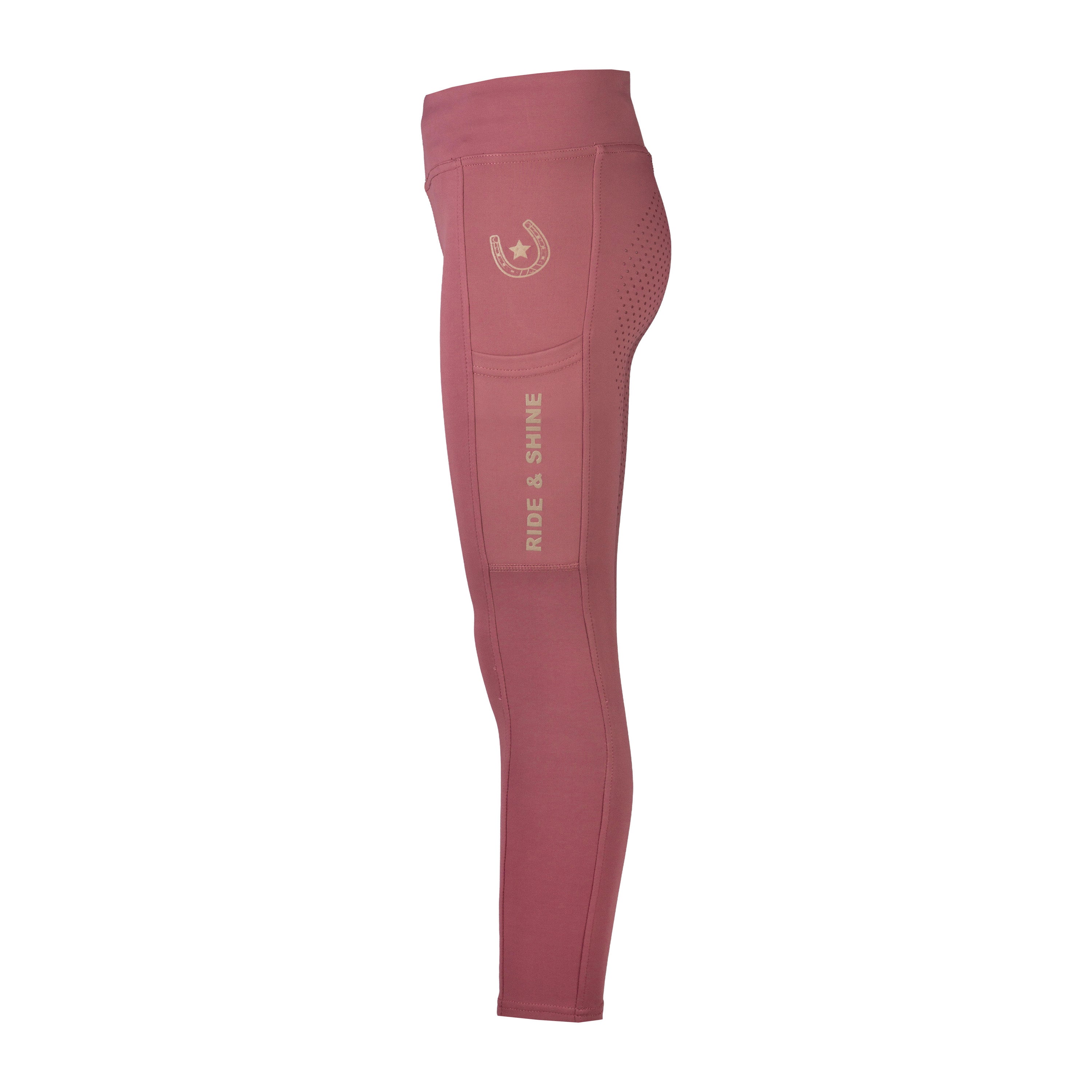 Rijlegging van sneldrogende en ademende stof. De binnenkant van de legging is geborsteld voor extra warmte en comfort. De broek heeft twee diepe zijzakken voor je mobiel verstelbare broekband voor een goede pasvorm en een volledig siliconen zitvlak voor extra grip. De champagne gouden details geven de broek een stijlvolle uitstraling. Productspecificaties: < Rijlegging van sneldrogende en ademende stof Geborstelde binnenkant voor extra warmte Verstelbare tailleband aan de binnenkan Twee zijzakken diep genoeg voor mobiele telefoon Champagne gouden afwerking en accenten Volledig zitvlak met siliconenprint Materiaal: < 90% polyester 10% elastaan (binnenkant geborsteld)