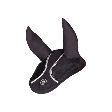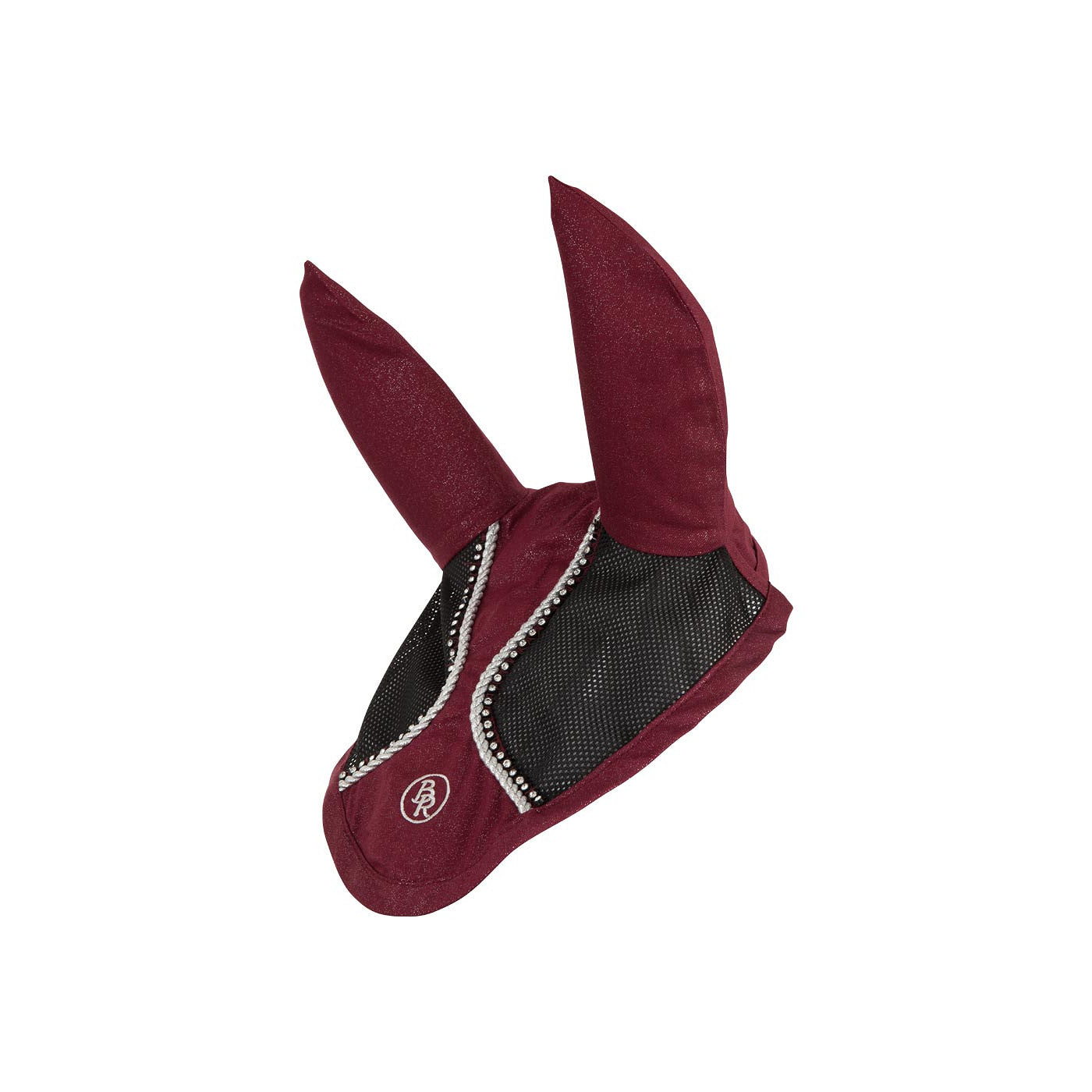 Oornetje van polykatoen met polyester mesh inzetstukken voor extra ventilatie. Het oornetje is luxe afgewerkt met een zilverkleurige koordbies en een bies met imitatie diamanten. Bijpassend BR zadeldek Glamour Chic, artikel 165032 en 166032.