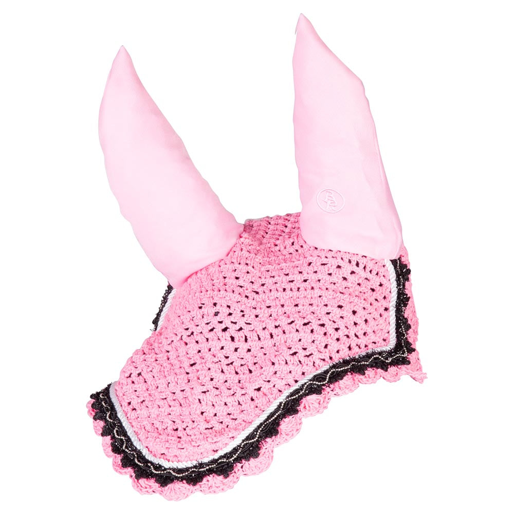 Gehaakt oornetje met oren van polykatoen. Het oornetje is voorzien van een koordbies en van decoratief band met een fijne, zilverkleurige ketting. Bijpassend BR zadeldek Organza.