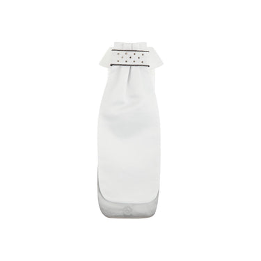 Geplooide plastron vervaardigd van een mooie kwaliteit glanzend polyester satijn. In het midden is de band van de plastron verfraaid met donkere imitatiediamanten en een glinsterend biesje. De plastron is aan de onderkant voorzien van een zilverkleurig geborduurd BR-logo. De plastron heeft een dubbele overslag, waarbij de binnenzijde is uitgevoerd in glanzend zilverkleurig satijn voor een extra luxe uitstraling. De plastron is uiterst praktisch in gebruik, hoeft niet te worden gevouwen en ook het gebruik van een plastronspeld is overbodig. De plastron is gemakkelijk om de boord van het wedstrijdshirt of de wedstrijdblouse te bevestigen door middel van de klittenbandsluiting aan de achterkant.