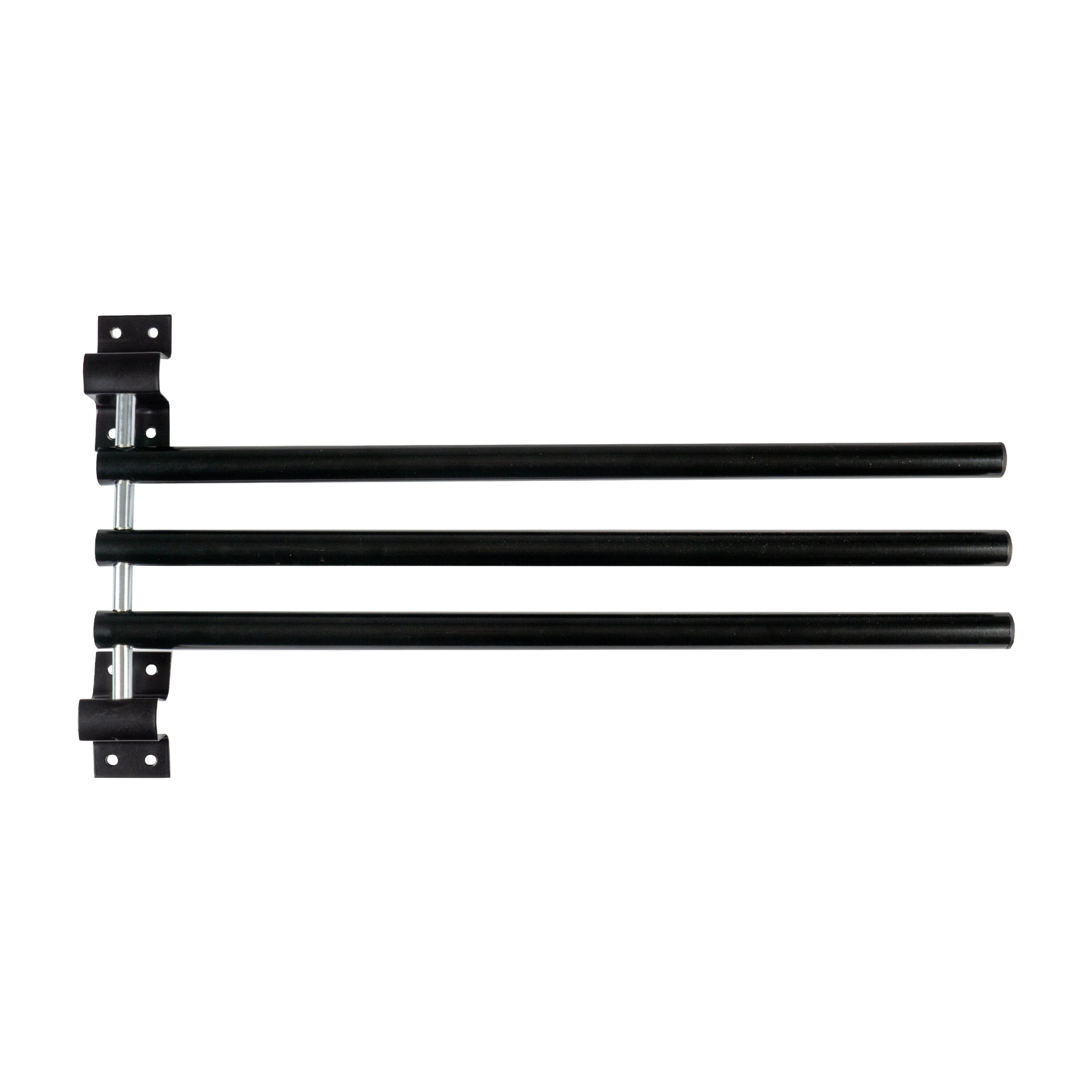 Het metalen rek heeft 3 inklapbare stangen en is te bevestigen aan de muur.