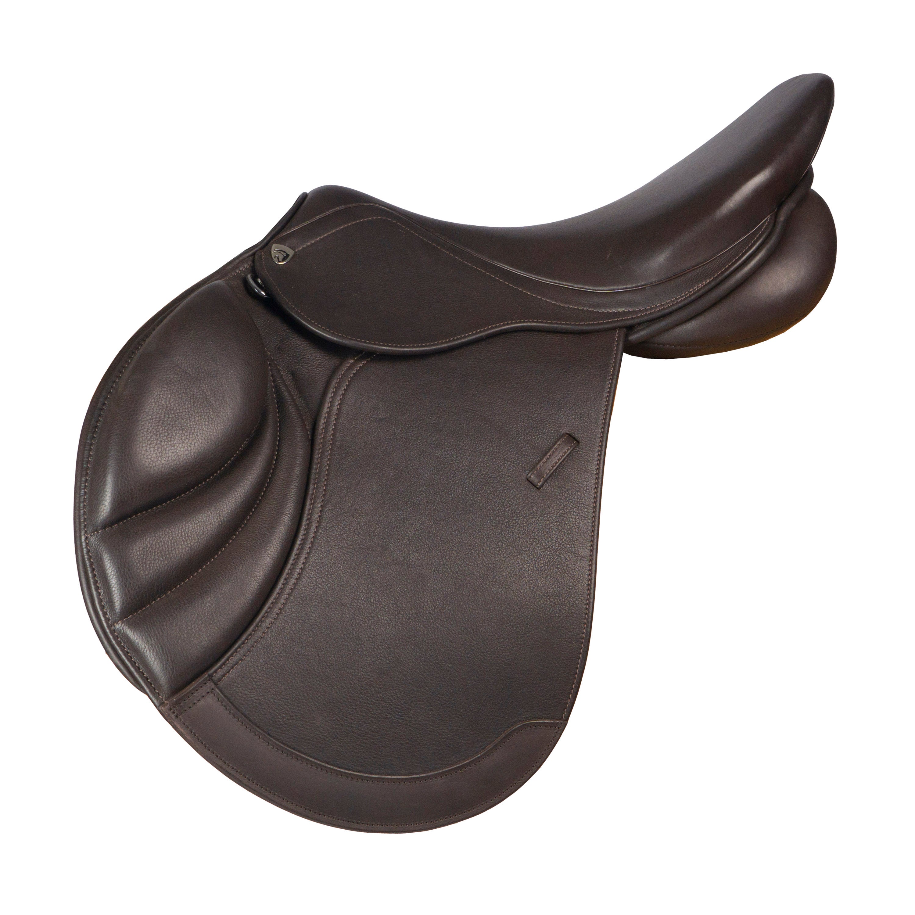 Mooi ontworpen dubbel leder springzadel met zachte en medium diepe zit. De Jumex is uitgevoerd met een verwisselbaar kopijzer wat dit zadel geschikt maakt voor verschillende type paarden. Het zadel wordt standaard geleverd met een medium zwart gekleurd kopijzer. Andere maten zijn apart verkrijgbaar. De anatomisch gevormde kniewrong ondersteunt de ruiter bij het vinden van de juiste positie in het zadel. De kniewrong is gepositioneerd onder het zweetblad en is afneembaar middels klittenband. De dubbel leder uitvoering zorgt voor extra grip in het zadel. Het mediumwijde kussenkanaal zorgt voor bewegingsvrijheid van de ruggenwervels en de wolgevoerde kussens voor een optimale drukverdeling over de paardenrug. Productspecificaties: Gemaakt van rundleder en kunstleder Medium diepe zit Anatomische gevormde kniewrong afneembaar middels klittenband Mediumwijd kussenkanaal Synthetisch wol gevoerde kussens 3 singelstoten Kunststof boom Verwisselbaar kopijzer system standaard geleverd met medium zwart kopijzer