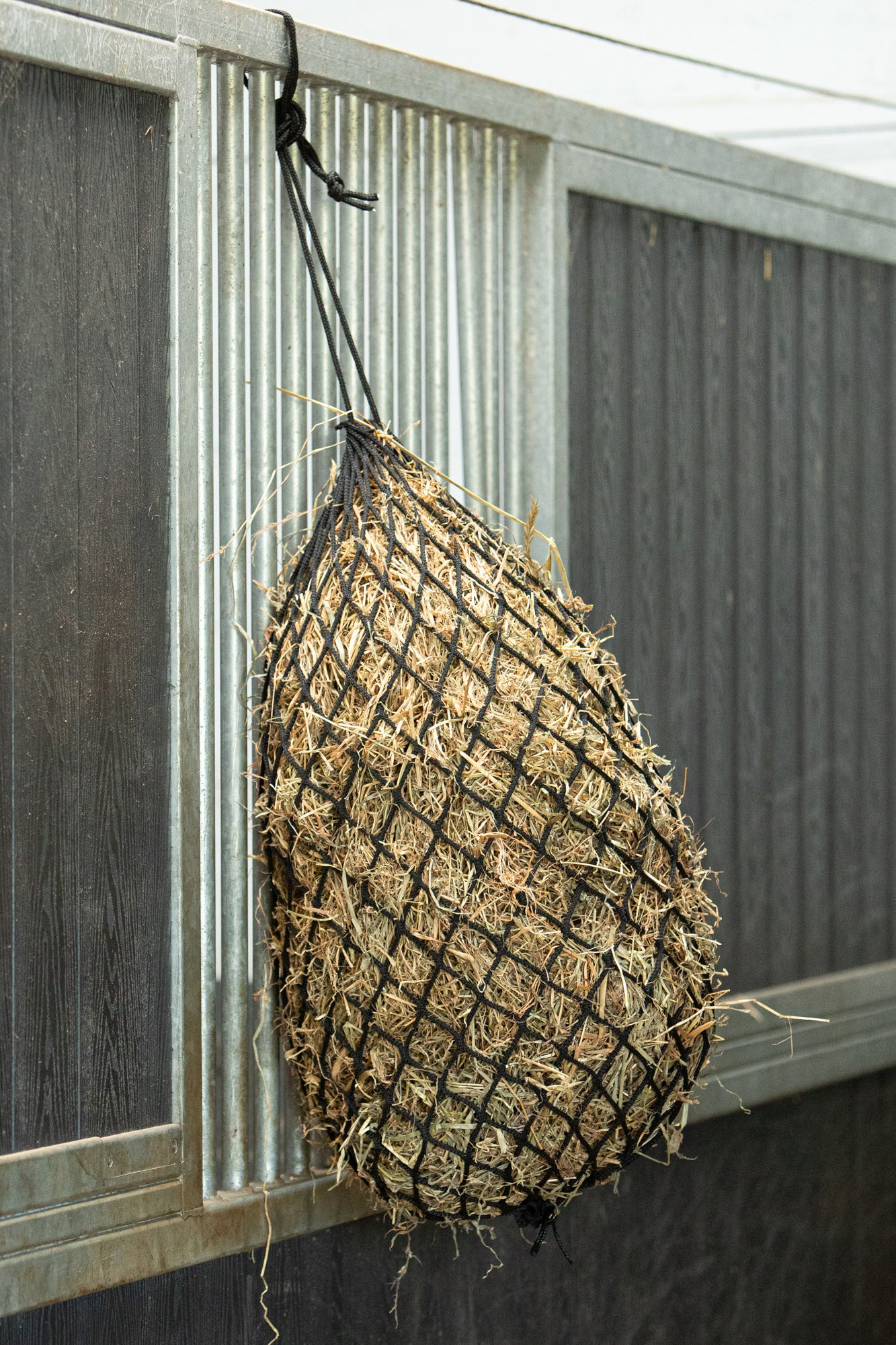 Een knooploos hooinet is zachter en comfortabeler voor het paard doordat het geen harde knopen heeft die kunnen schuren of drukpunten veroorzaken. Dit helpt irritaties aan lippen, tong en neus te voorkomen. Dankzij het knooploze ontwerp is het materiaal sterker en duurzamer, wat bijdraagt aan een langere levensduur. Ook voorkomt het onnodige slijtage aan de tanden. Het net is makkelijker te vullen, blijft beter in vorm en raakt minder snel in de knoop. Daarnaast bevordert het een langzamere voeropname en vermindert het hooiverspilling.