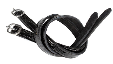 Spoorriempjes van croco lak leer. Productspecificaties: verstevigd met nylon voering per paar Afmeting: 45 cm lang