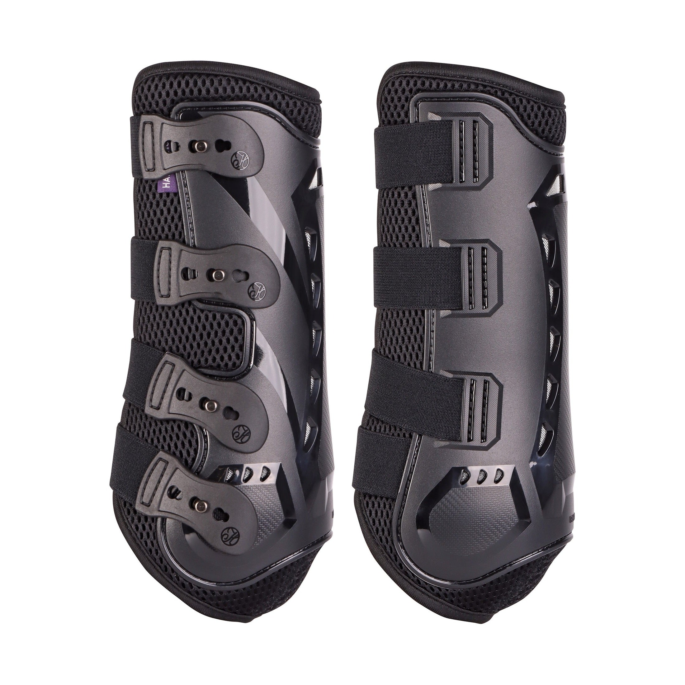 Prachtige beenbeschermers met een perfecte pasvorm rondom het been en de kogel voor optimale bescherming. Met sterke, elastische sluitingen. Door de speciale knopsluiting is er geen klittenband nodig. De "metal mesh" ventilatiegaten in de schaal zorgen voor ventilatie en beluchting. Door de optimale pasvorm heeft het paard veel bewegingsvrijheid. De TPU buitenschaal beschermt tegen aantikken en heeft een extra verdikking op de pees en op de kogel voor extra bescherming.