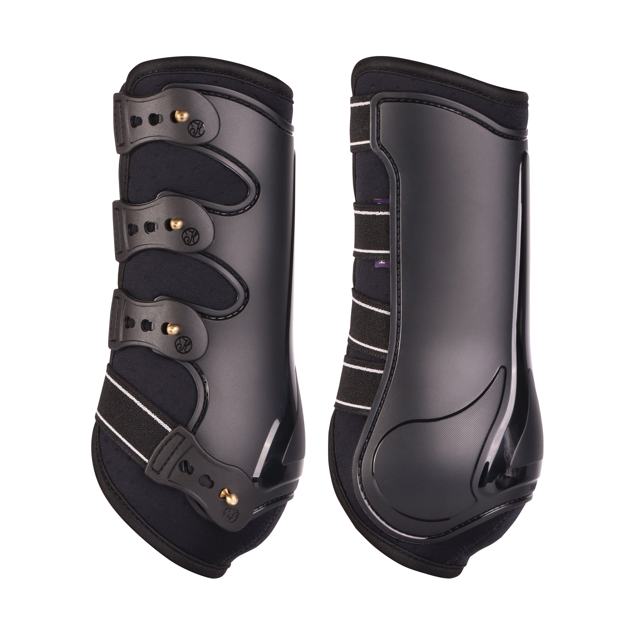 Revolutionaire beenbeschermers met sterke, elastische sluitingen. Geheel uitgevoerd in air-neopreen. Door de optimale pasvorm heeft het paard veel bewegingsvrijheid. De harde schaal beschermt tegen aantikken.