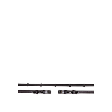 Lederen antislip teugel met rubberen binnenzijde en laklederen uiteinden. De teugel is voorzien van handstops en blinde sluitingen, 16 mm. Zonder teugelstops.