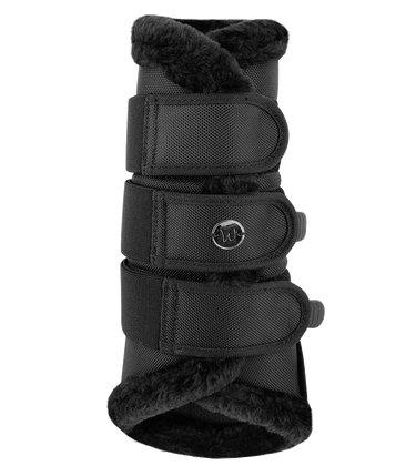 Dressage boot for front and hind legs. The outer material is made from a robust 1680 denier material and offers good impact protection. The soft faux fur edge ensures a comfortable fit. The inner material is made of breathable mesh to prevent heat build-up. In size M with two Velcro fasteners, in size L and XL with three Velcro fasteners each. With small silver-coloured metal logo. Pair.