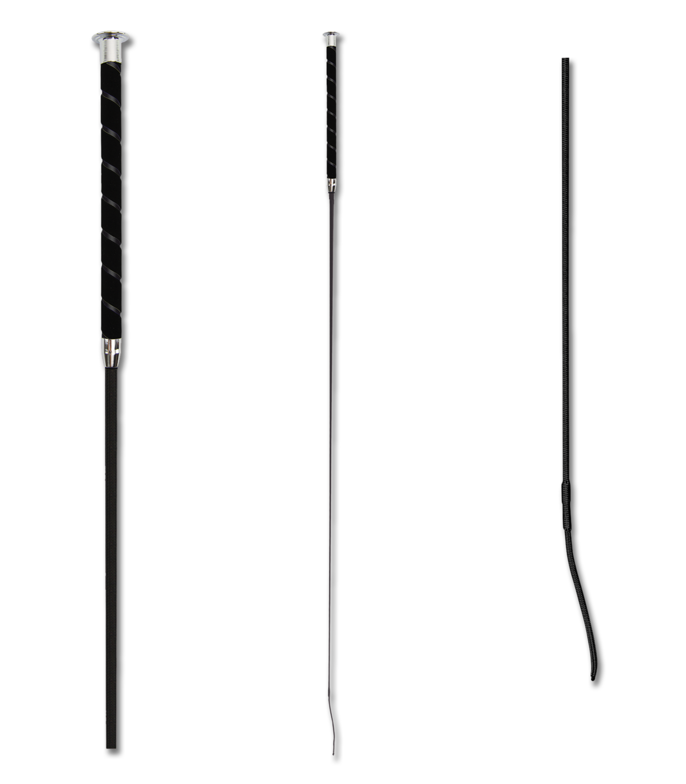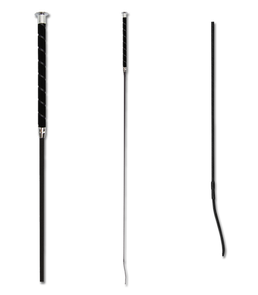 Dressage whip with non-slip, contrasting black velour, velvety handle.