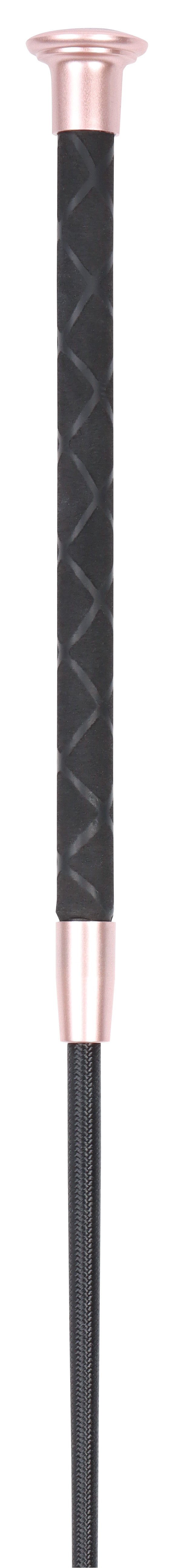 Luxe dressuurzweep met een gedecoreerd mat zwart handvat en leuke mat metallic dop.