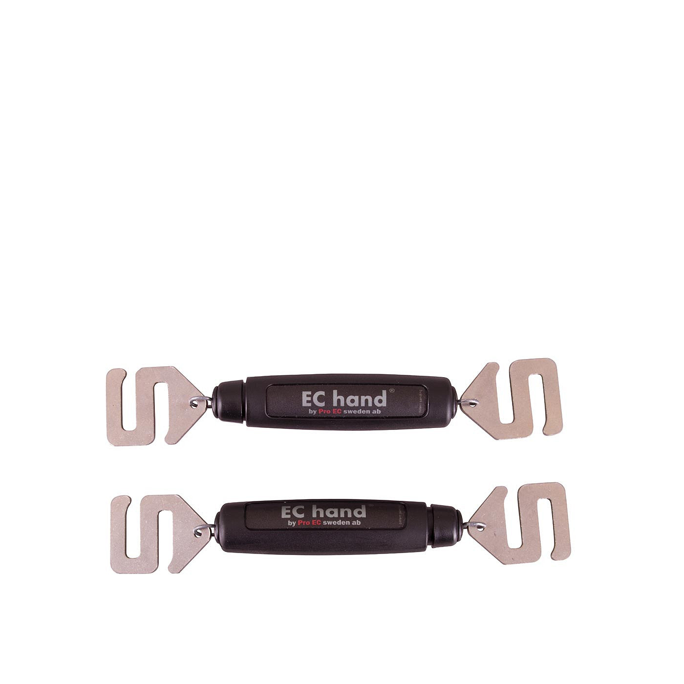 De EC-Hand maakt de ruiter steeds weer bewust om met een correcte hand te rijden, zodat uw paard recht en in balans blijft. Tijdens de training moet een paard zo getraind worden dat het aan beide zijden even soepel en gespierd wordt, zodat het paard in balans is en de achterbenen goed kan gebruiken. De EC-hand toont u steeds de druk die u op beide teugels heeft, zodat u kunt corrigeren als dat nodig is. De teugelhulp kan eenvoudig op de teugel bevestigd worden. Per paar. Exclusief teugel.