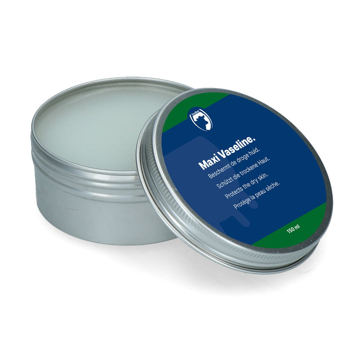 Maxi-Vaseline verdwijnt niet door vocht, houdt de huid flexibel en biedt een goede bescherming tegen invloeden van buitenaf zoals regen, wind of sterke zonnestraling.