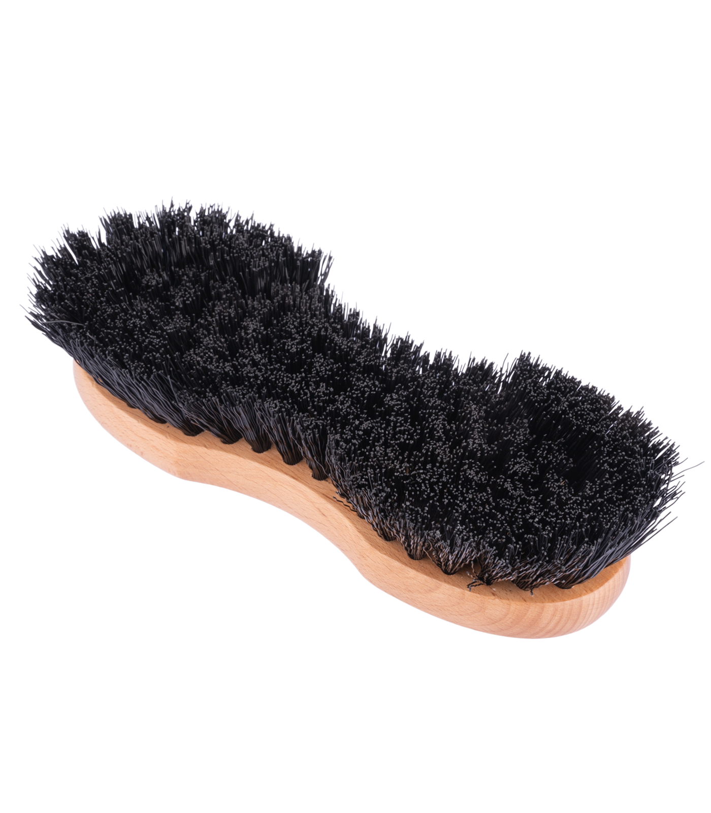 Plastic bristles of different lengths make it easy to clean the horse"s hooves. The wooden back sits comfortably in the hand.