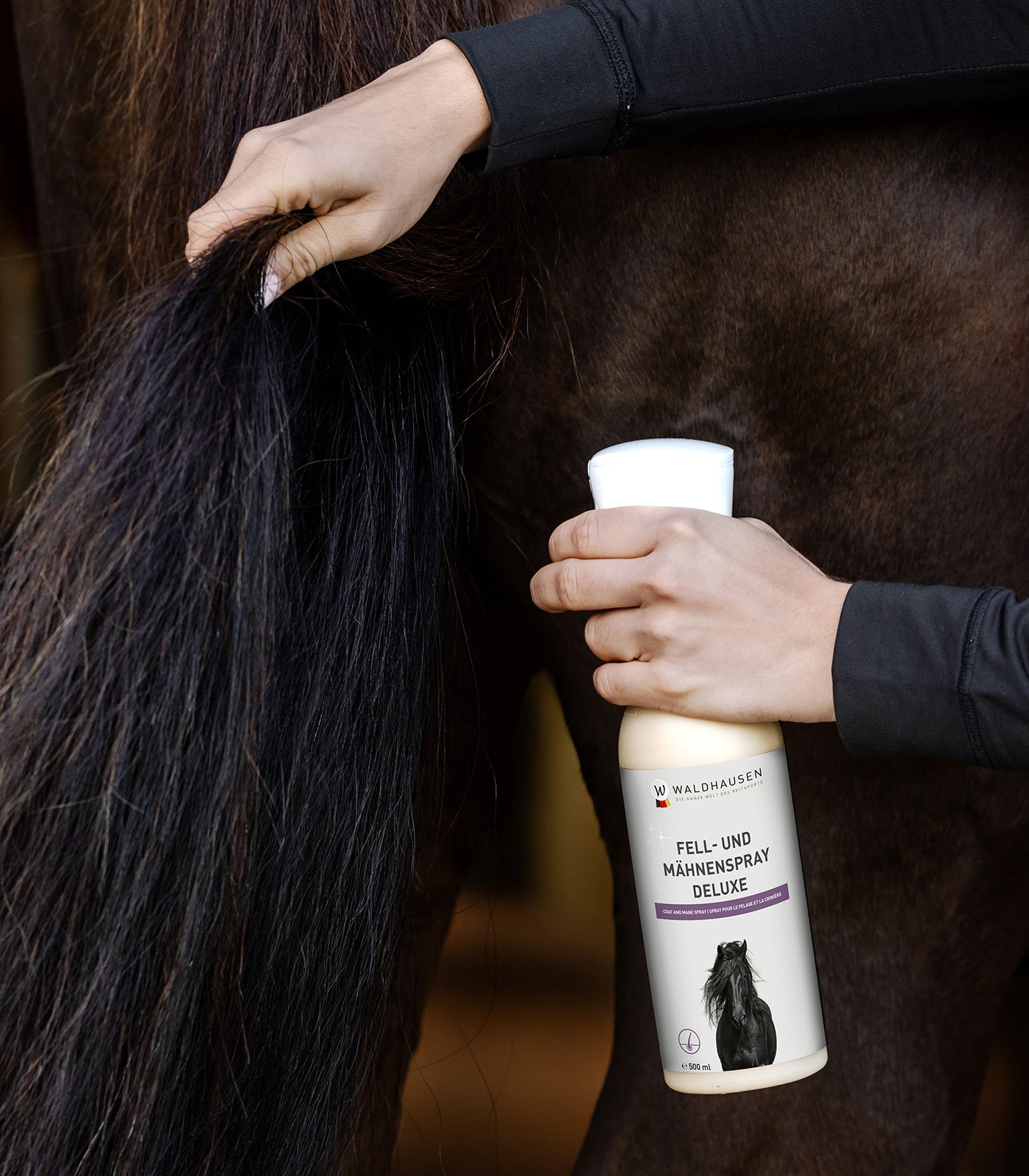 Conditioning spray for coat, mane and tail with dirt-repellent effect. The hair is knot-free, easy to comb and gains volume, looking sleek and shiny. The special spray head distributes the product evenly onto the hair.