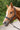 Halster afgewerkt met een bies met glitters en een piping op de neus, het kopstuk en de kaken. Gunmetal kleurige fournituren met een Denici Cavalli logo laserprint erop. Het kopstuk is aan beide zijden verstelbaar en enkelvoudig op de neus. Inclusief een halstertouw van 2 meter lengte.