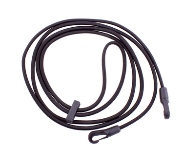 Elastisch koord met 2 kunststof cliphaken. Verstelbaar middels een schuif dat boven het kopstuk wordt geplaatst. Kan worden gebruikt tijdens het rijden of het longeren om het paard op vriendelijke wijze te vragen om buiging van de hals in voorwaarts neerwaartse tendens.