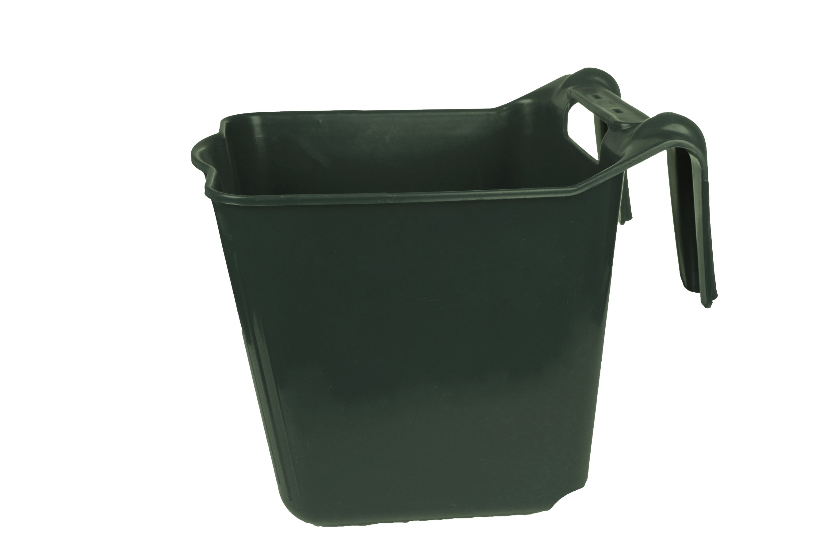 Plastic voeder/drinkbak om te hangen aan box of stal. Inhoud 16 liter. Afmeting: Breedte: 28 cm Hoogte: 27 cm