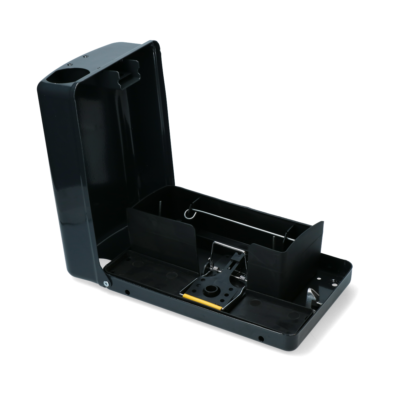 Robuuste metalen rattenvoerdoos. VR staat voor Vandal Resistant ofwel vandalismebestendig en hierdoor is de Ultrabait inzetbaar op plaatsen waar de kans op schade aan een kunststof voerdoos reëel aanwezig is. De voerdoos heeft een naadloos gegalvaniseerde behuizing met coating voor hoge weersbestendigheid. Voorzien van een sterk metalen, gelijksluitend slot en het scharnierende deksel geeft eenvoudig toegang tot het kunststof interieur. In de onderzijde van de voerdoos zijn bevestigingspunten aanwezig waarmee de voerdoos, eventueel met behulp van een bevestigingsset, kan worden vastgezet.