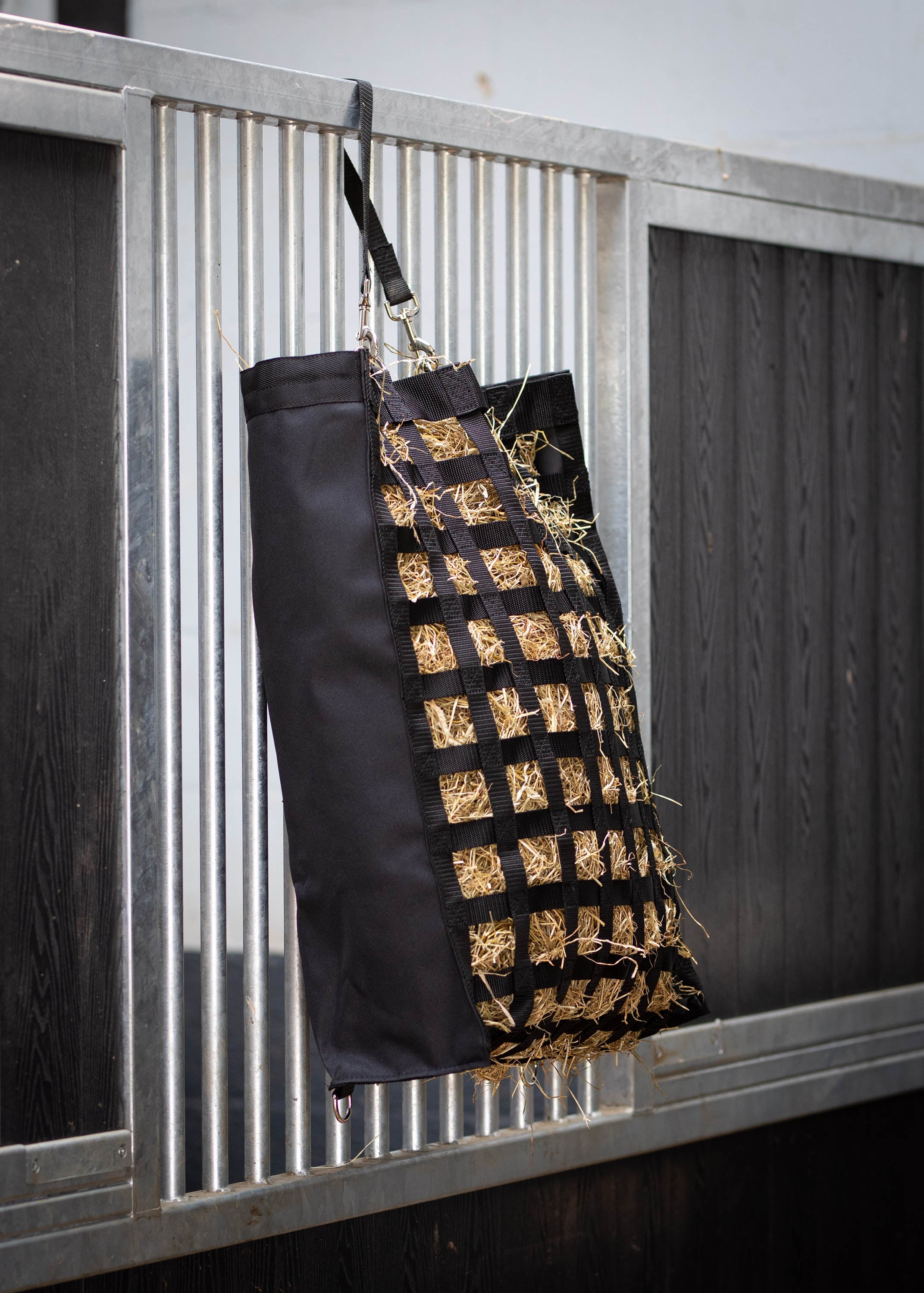 De sterke 600D nylon hooitas Adagio is een zogenaamde "slow feeder". Door het fijne maassysteem (5CM*5CM) wordt de snelheid van de ruwvoeropname vertraagd en de fourage-tijd verlengd.