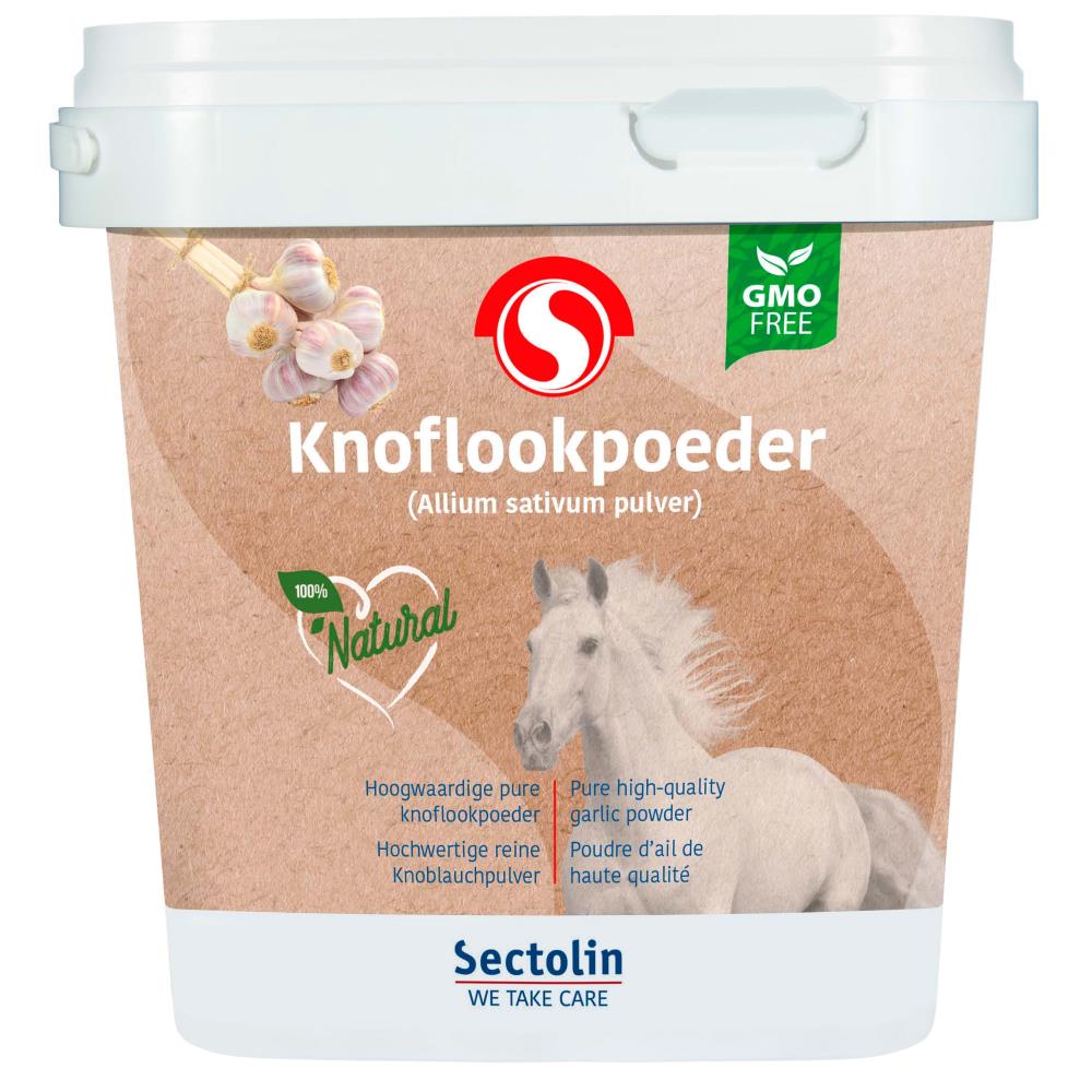 Voedermiddel voor paarden. Knoflookpoeder wordt gemaakt van een hoogwaardige kwaliteit knoflook. Knoflook is een rijke bron van zwavel, enzymen, aminozuren en sporenelementen. Het bevat vitamine A, B, C, E en K. Knoflook ondersteunt de luchtwegen en is goed voor de algemene weerstand.