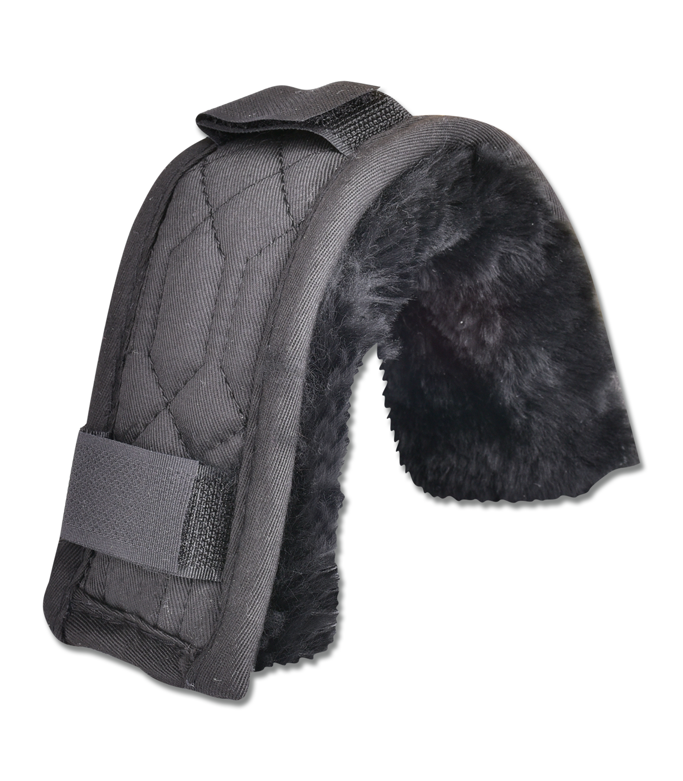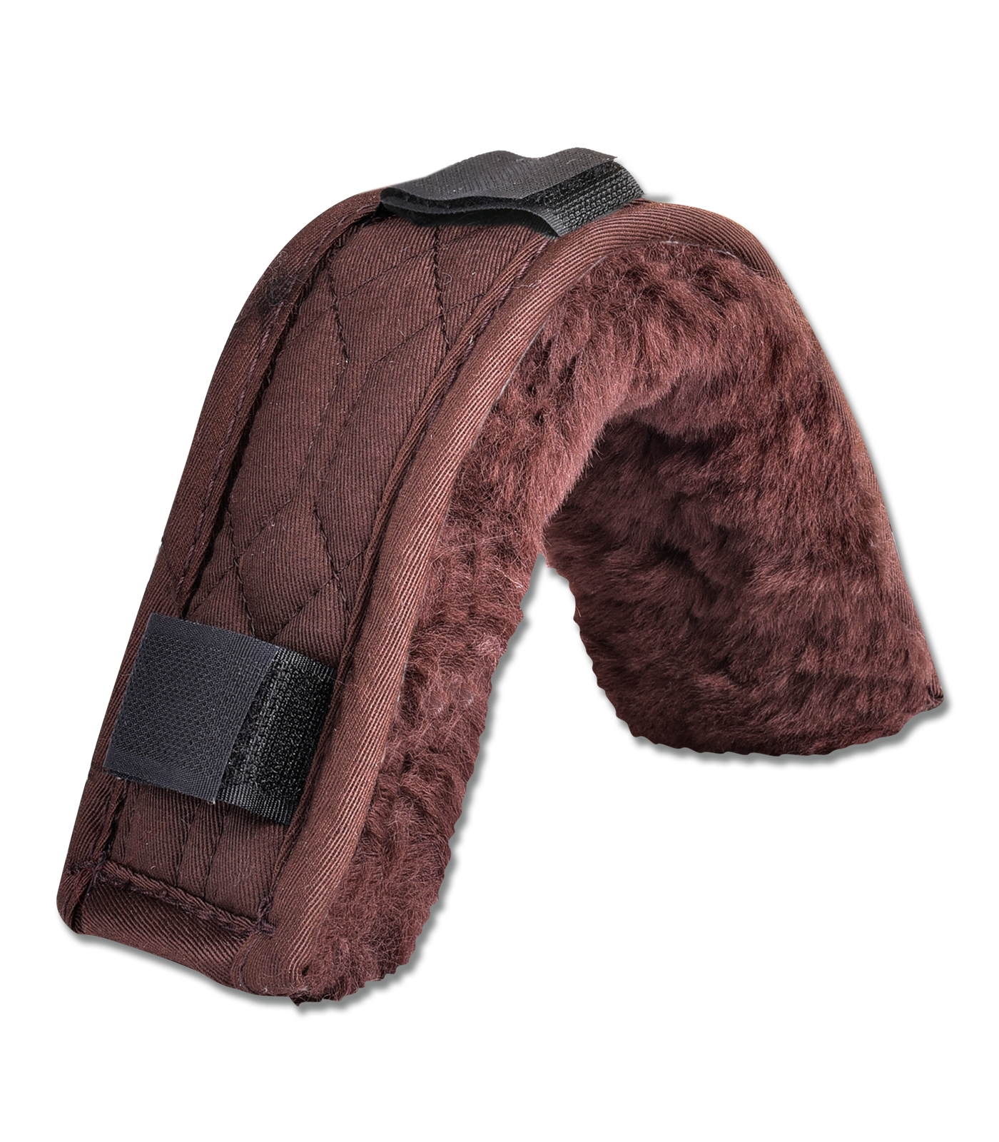 Soft lambskin pad to protect the head. For bridle, halter etc. Easy to attach with 2 Velcro straps.