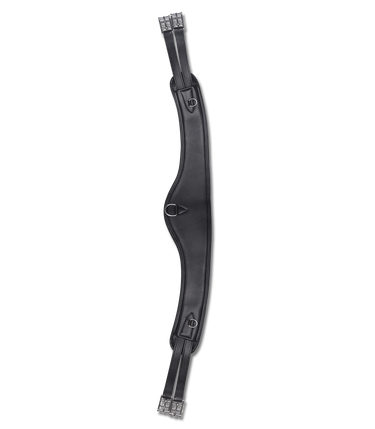 Half moon girth for a better fit on the more full-bodied horse and for when the saddle tends to slip forwards. In high quality leather with very soft padding. With 3 D-rings for attaching side reins. D-rings and roller buckles in stainless steel. Without elastic.