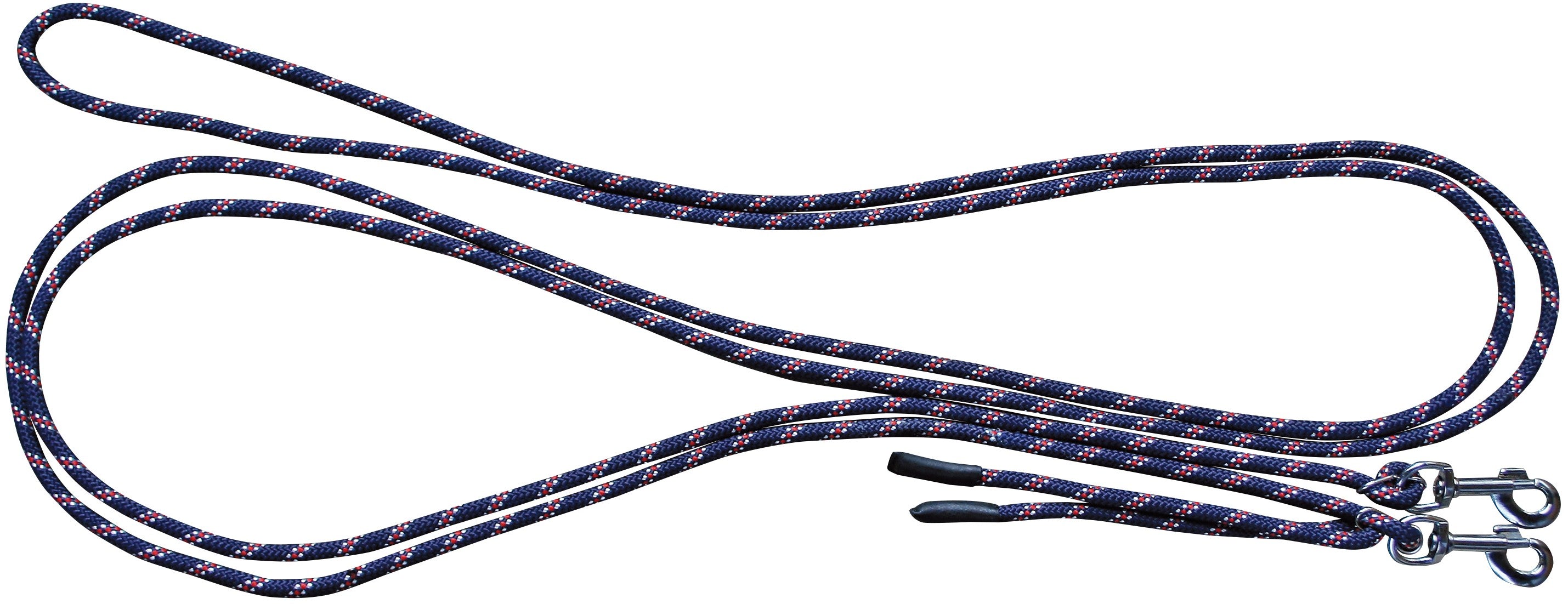 Longeerkoord (5.5M) met twee musketons. Dit longeerkoord is bedoeld om bijgezet te longeren. Het longeerkoord is aan twee zijden eenvoudig te verstellen. Wordt geleverd inclusief omschrijving van diverse longeer-posities.
