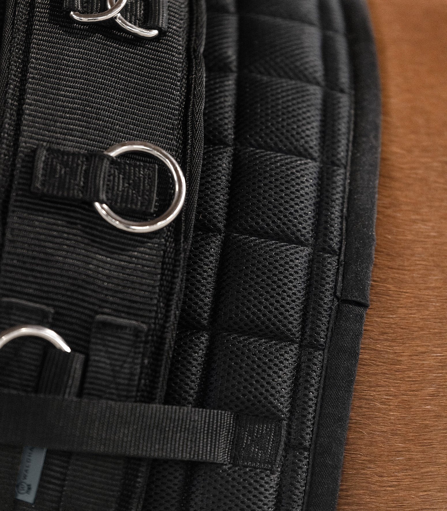 A 15 mm intermediate layer and diamond quilting make this lightweight lunging pad particularly breathable, enduringly soft and shape-retaining. Attaches securely to surcingle with two touch tape straps.