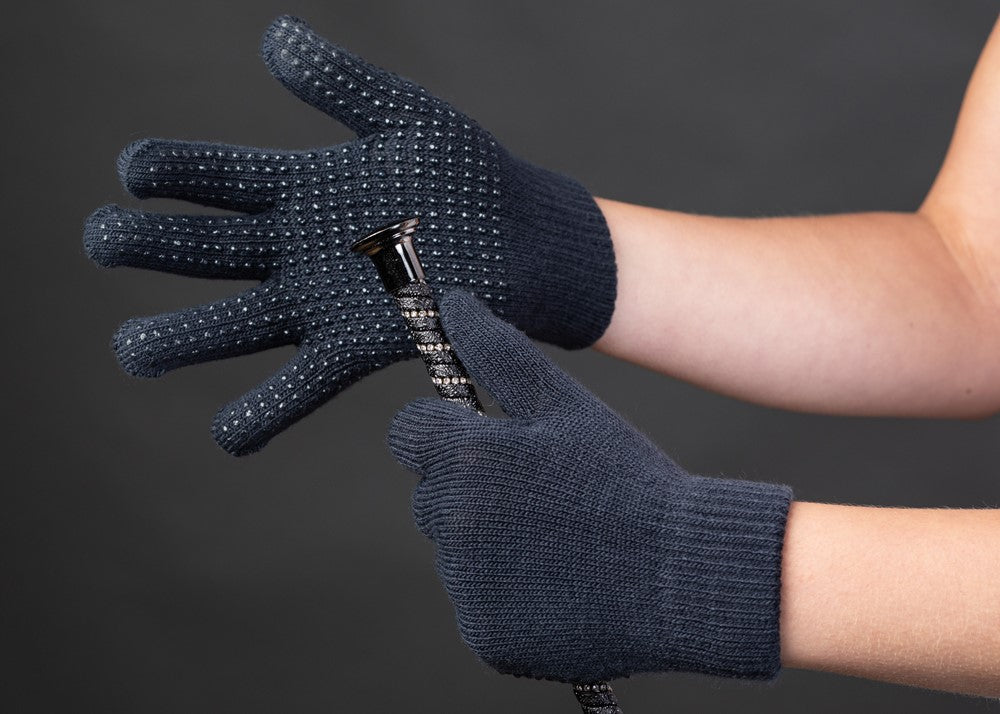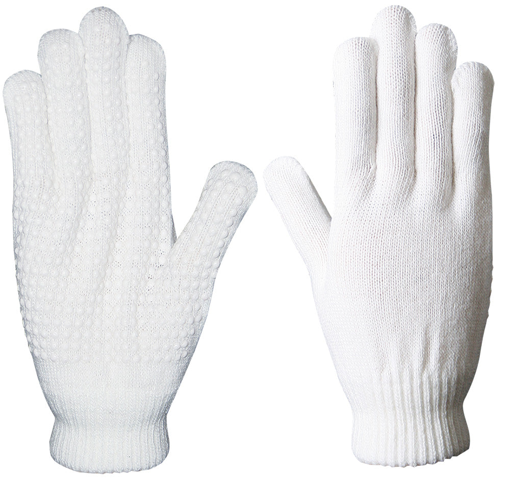 Fijne elastische handschoen van gebreid materiaal en aansluitende boord. De handpalm is voorzien van anti-slip nopjes.