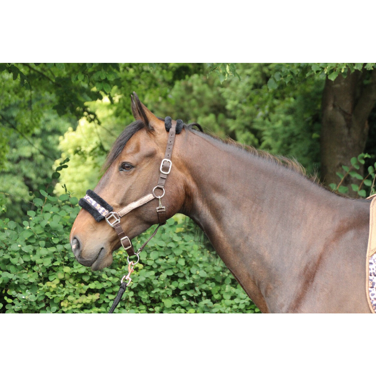 Dit prachtige MHS nylon halster Safari is onderdeel van onze Safari collectie en de prijs is sterk gereduceerd!!! De halster is onderlegd echter verschilt in lengte (zie foto). Deze prachtige halsters zijn heerlijk zacht onderlegd en hebben een mooie print op de neusband en de bakstukken. De halster is verstelbaar bij de neusriem en het kopstuk voor een perfecte pasvorm. De sluiting van de halsters zit aan de keelriem.