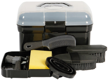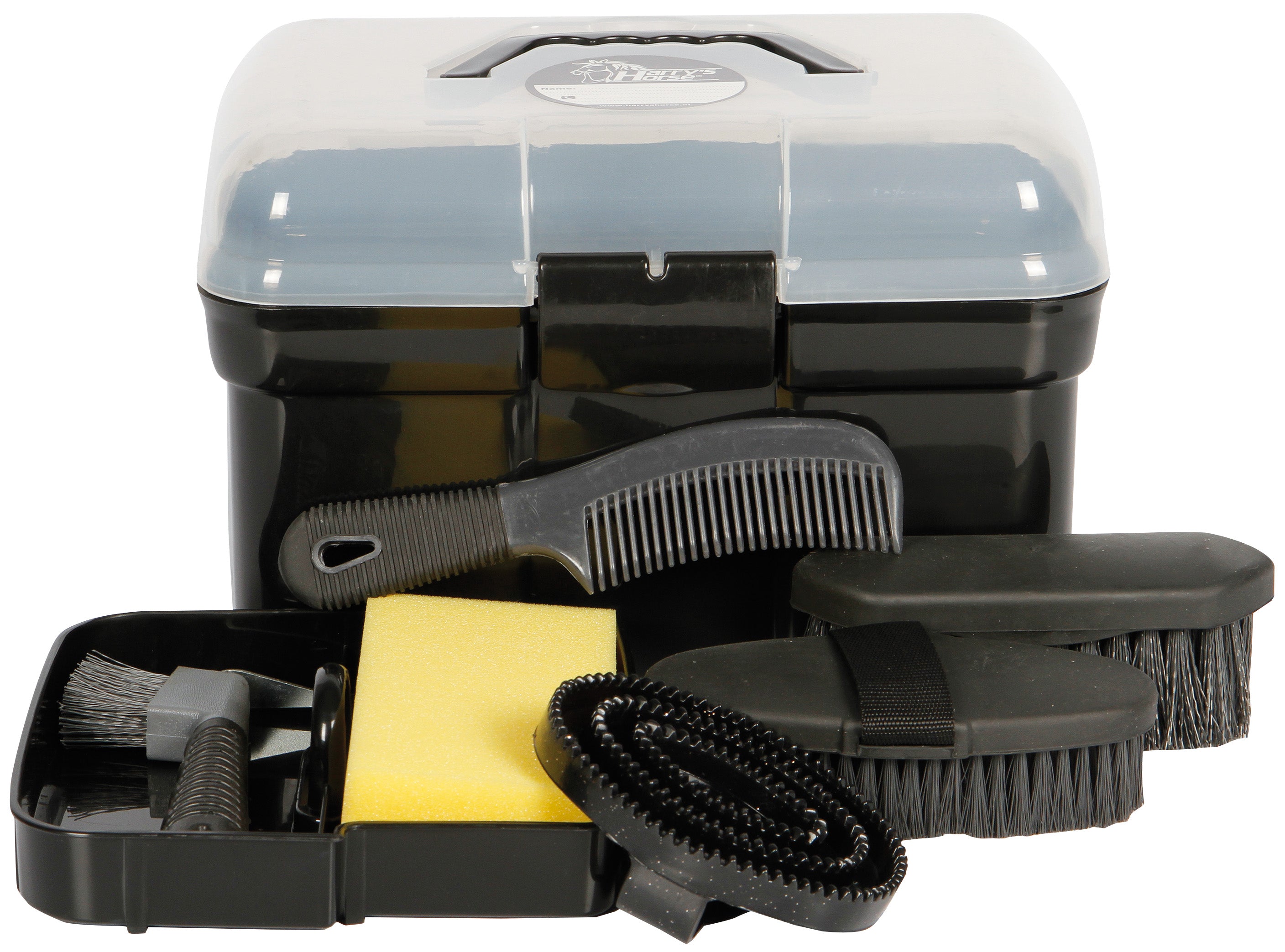 Inhoud: hoevenkrabber met borstel, glans borstel, harde borstel, rosborstel met glitters, spons en manenkam