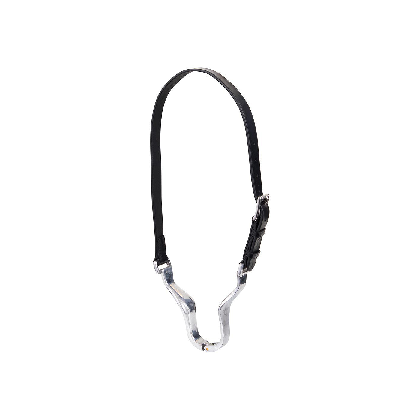 Lederen riem met een aluminium middenstuk die vlak achter het hoofd van het paard wordt vastgemaakt met een gespsluiting. Met deze band wordt het gedrag van het paard onderdrukt, het paard kan geen lucht meer zuigen.