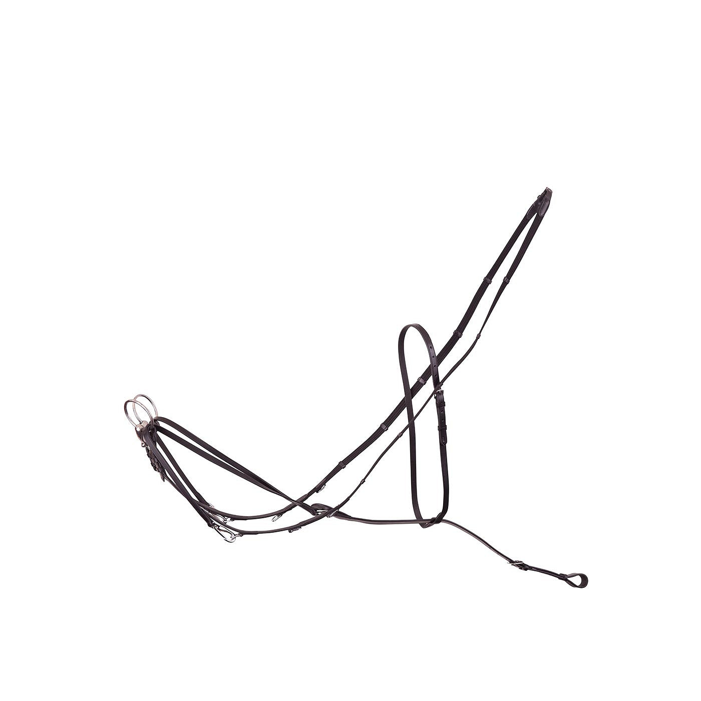 Lederen Thiedemann met een verstelbare halsriem en een verstelbare singellus met ring. De uiteinden van de martingaal zijn voorzien van musketons. De linnen teugel, 19 mm, is voorzien van vijf lederen handstops en lederen uiteinden met gespsluitingen, 16 mm. De teugel heeft aan beide zijden drie D-ringen, twee op de lederen uiteinden en een op het webband. De Thiedemann wordt door de bitringen gehaald en daarna op de gewenste stand aan een D-ring van de teugel bevestigd. De Thiedemann is voorzien van roestvrijstalen fournituren. De teugel zorgt ervoor dat het paard het hoofd niet te ver omhoog en/of naar voren kan brengen tijdens het rijden.