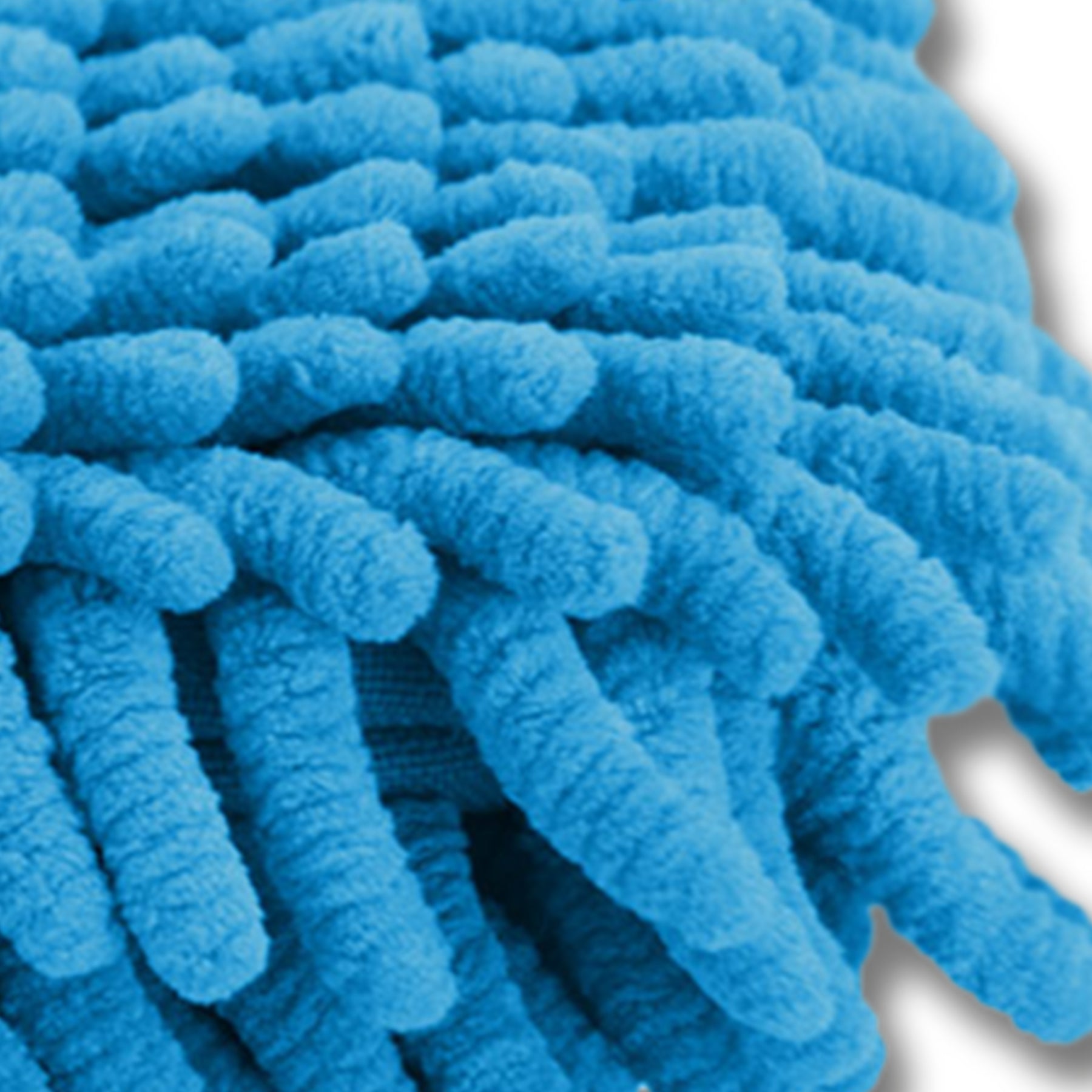 Microfibre grooming glove for easy, effective and comfortable grooming. The long fibres act like dirt magnets.