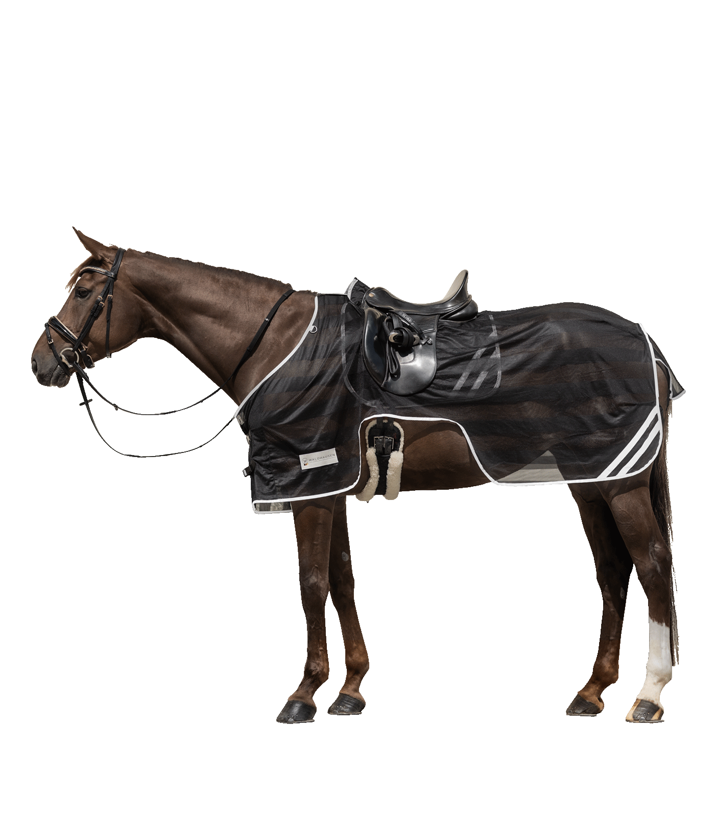 Lightweight exercise sheet in fine-meshed fabric and with reflective border all round.